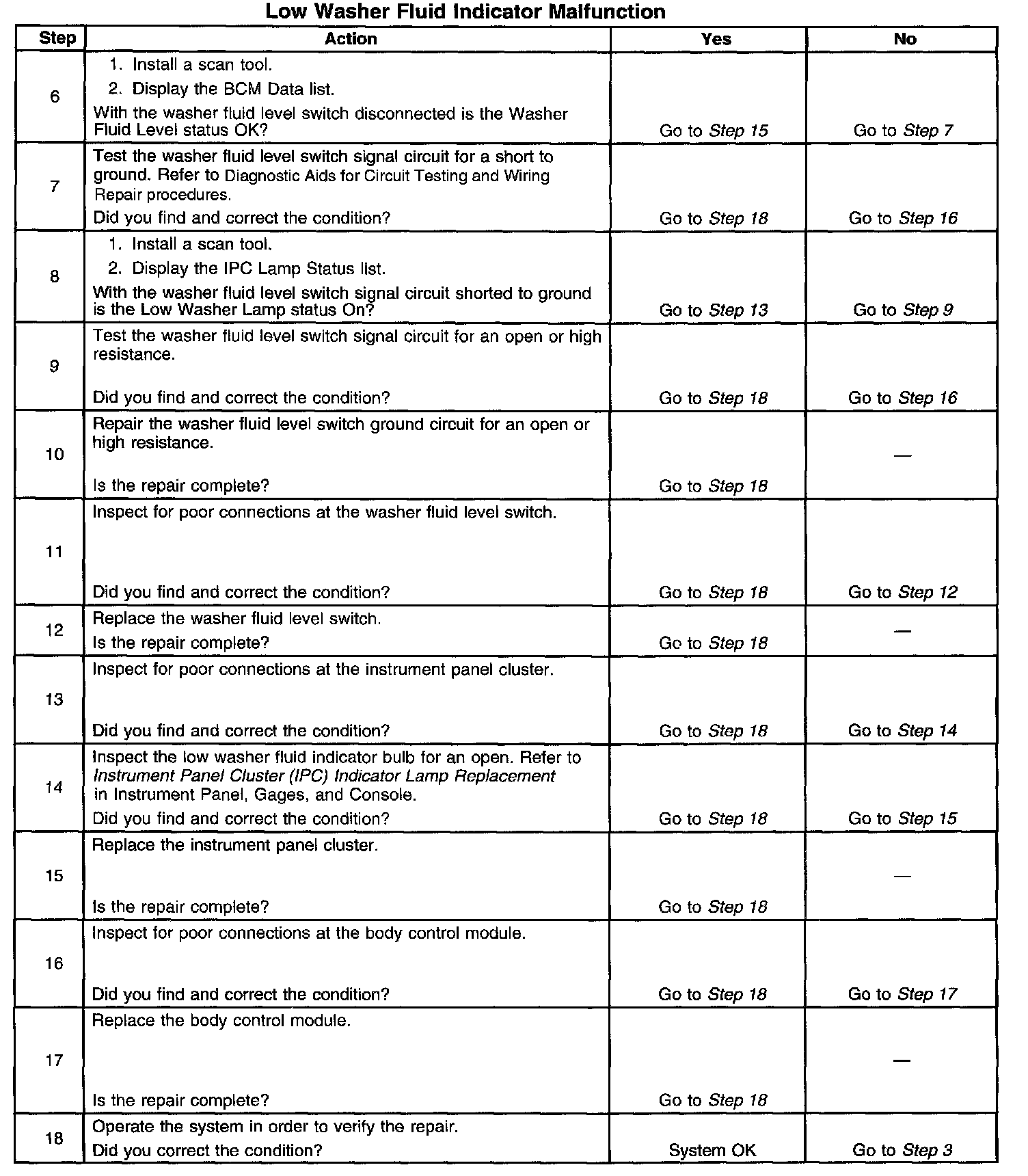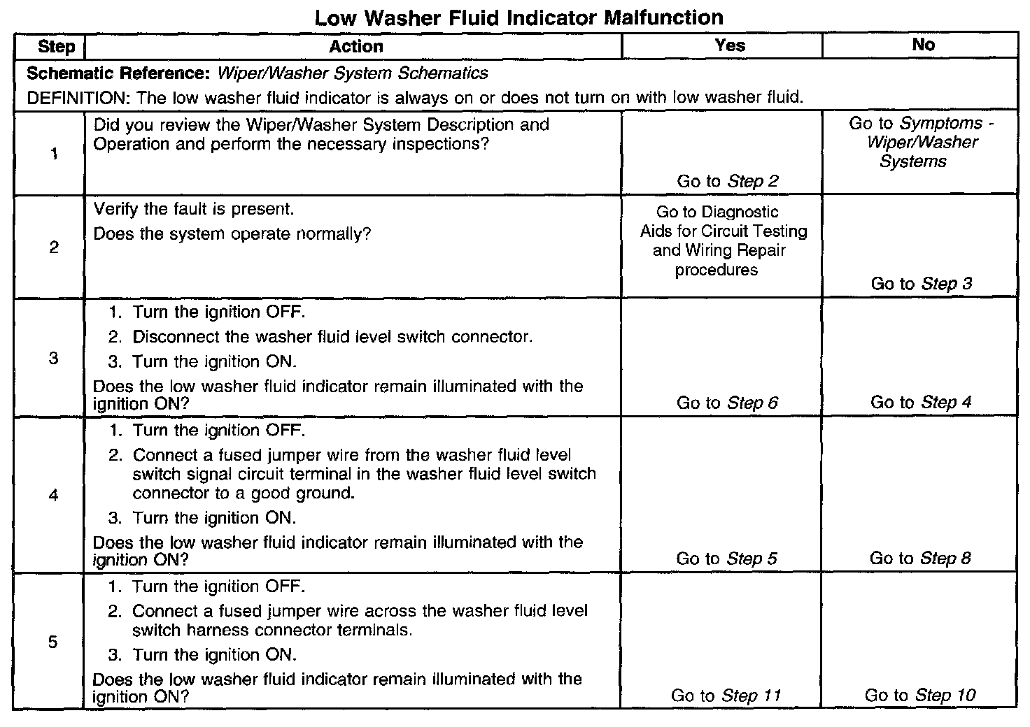 Low Washer Fluid Indicator Malfunction