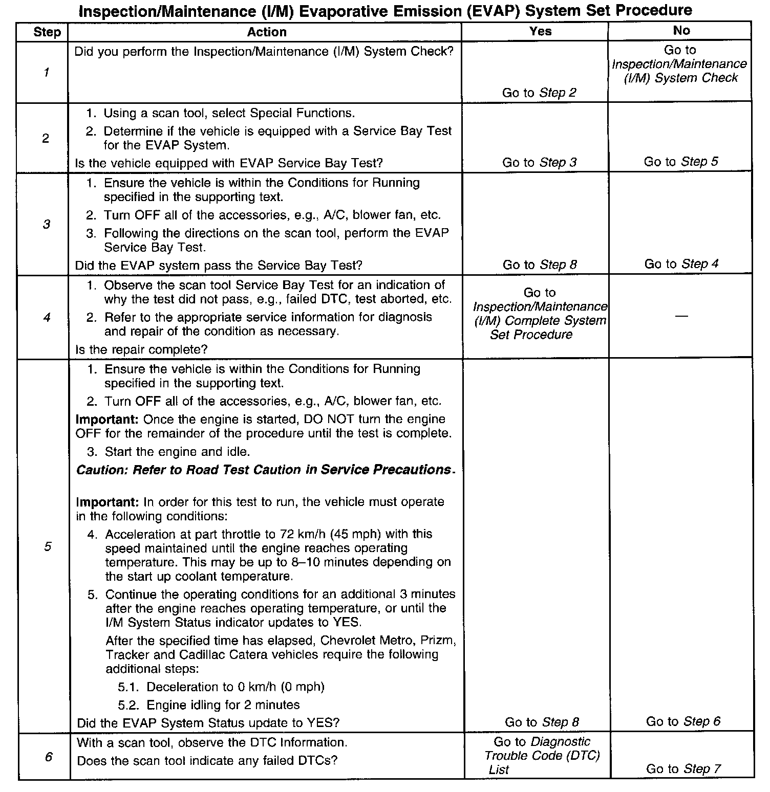1. Make sure you perform the I/M System Check before performing this test. Failure to do so may result in difficulty updating the status to YES. Inspection/Maintenance (I/M) System Check