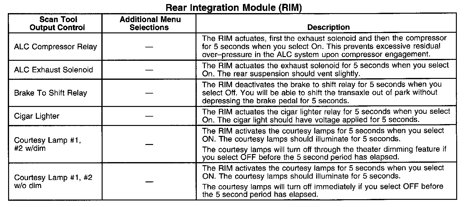 Scan Tool Output Controls - Rear Integration Module (RIM)