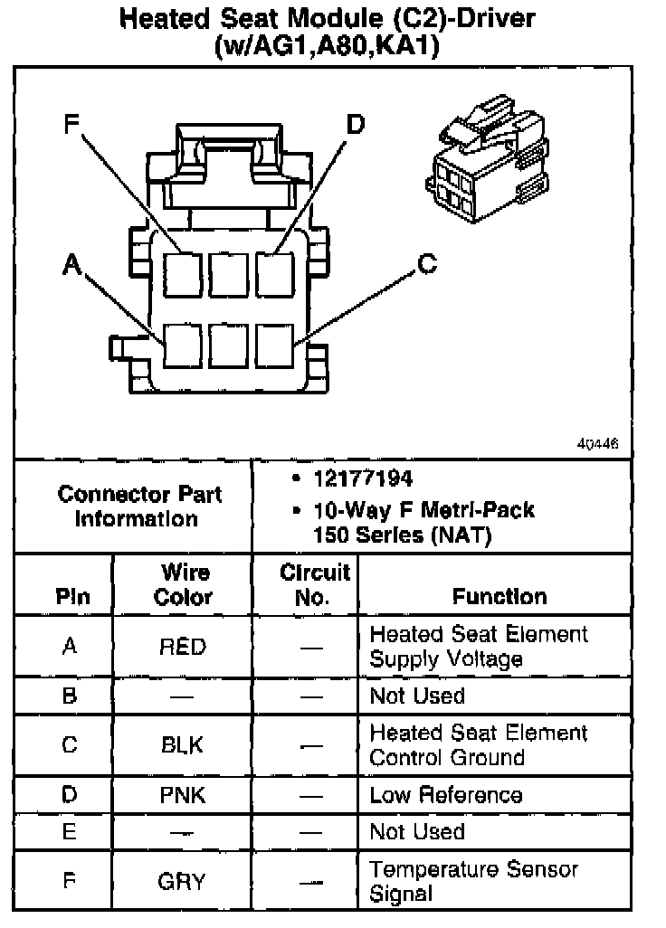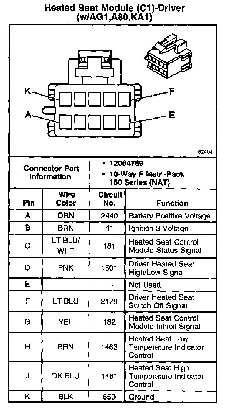 Heated Seat Module (C2) - Driver (W/AG1, A80, KA1):