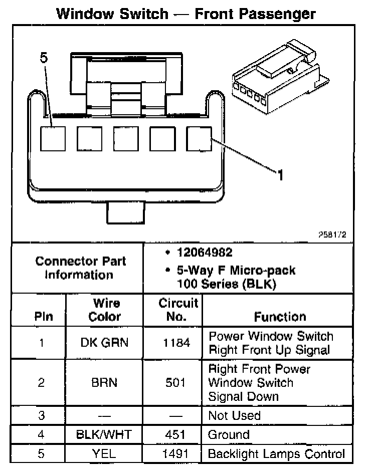 Window Switch - Front Passenger: