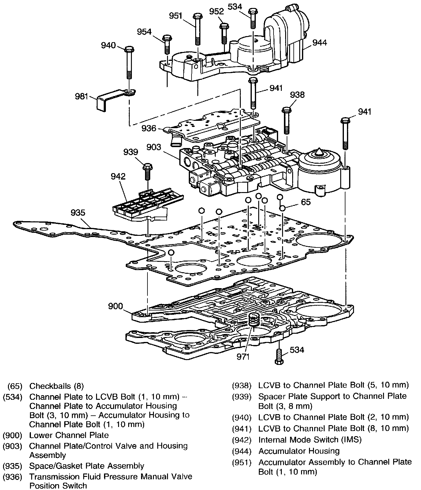 Lower Channel Plate, Control Valve Body and Accumulator Housing Assembly