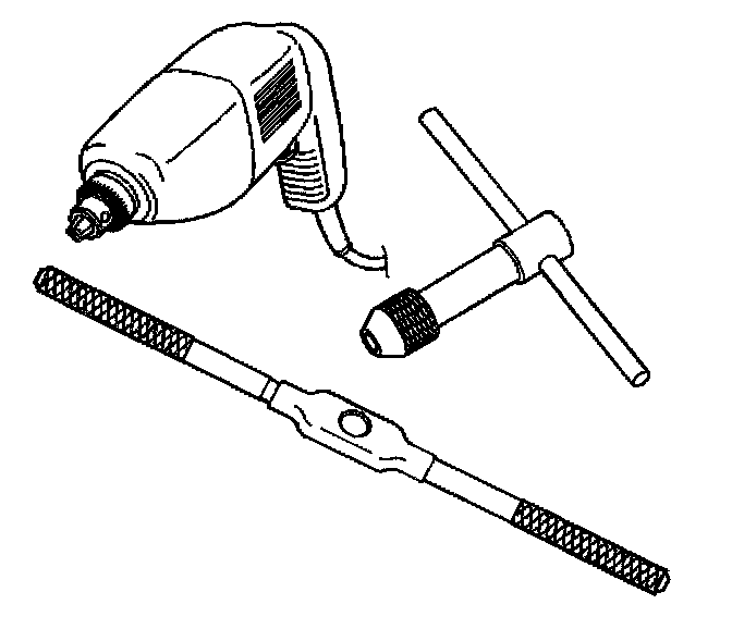 The tool kit J 42385-200 is designed for use with either a suitable tap wrench or drill motor. Limited access and larger hole repair may process better using a tap wrench. An extension J 43965 may also be necessary to drive the thread repair tooling dependent on access to the hole being repaired.