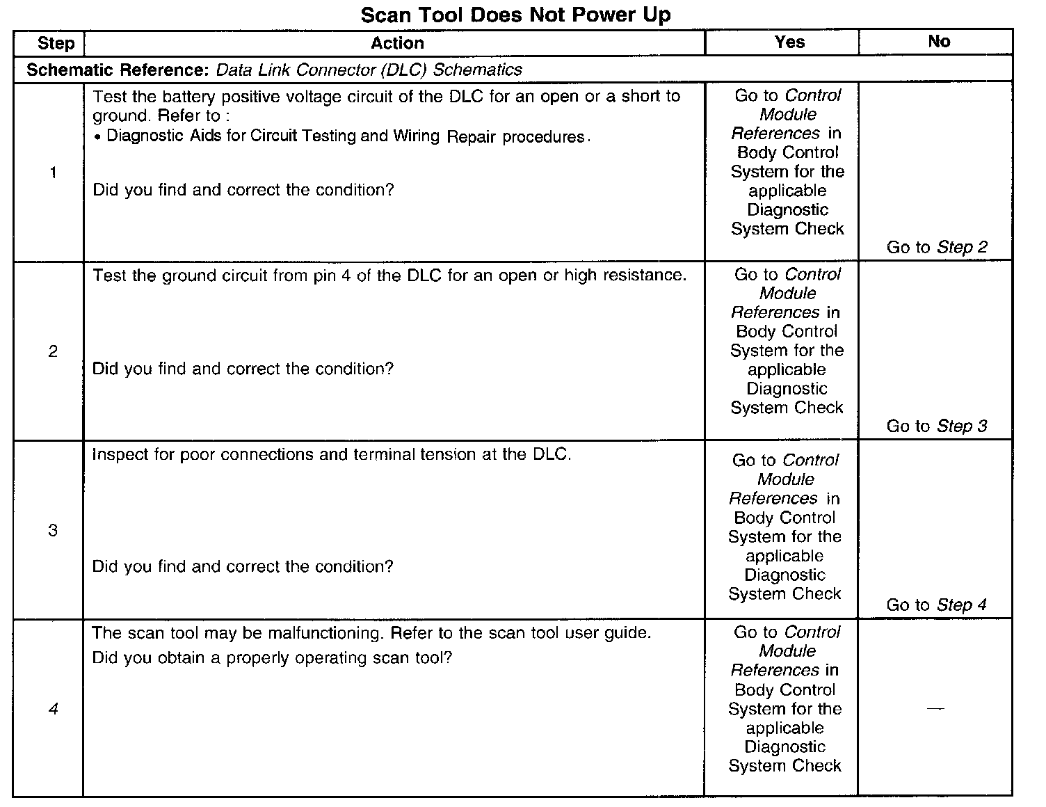 4. If the battery positive voltage and ground circuits of the DLC are functioning properly. The malfunction must be due to the scan tool.