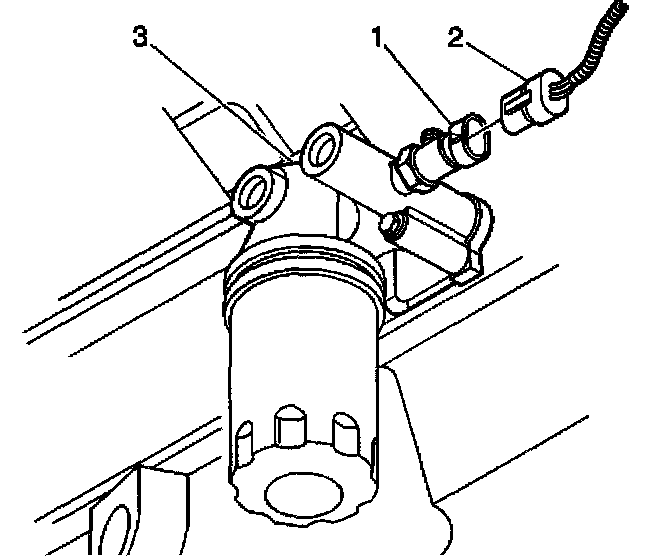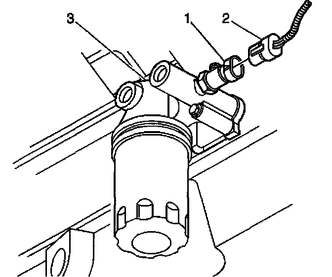 3. Remove the engine oil pressure switch (1) from the oil filter adapter (3).