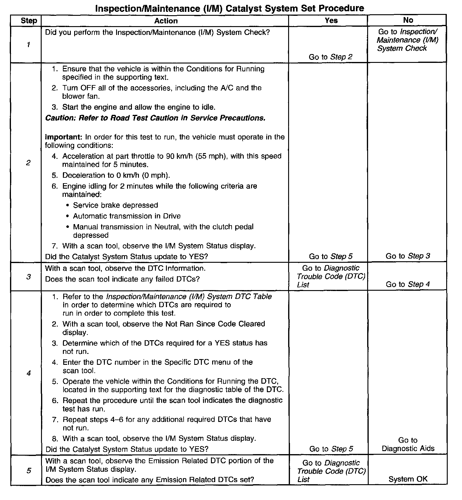 1. You must perform the I/M System Check before performing this test. Failure to do so may result in difficulty updating the status to YES. Inspection/Maintenance (I/M) System Check