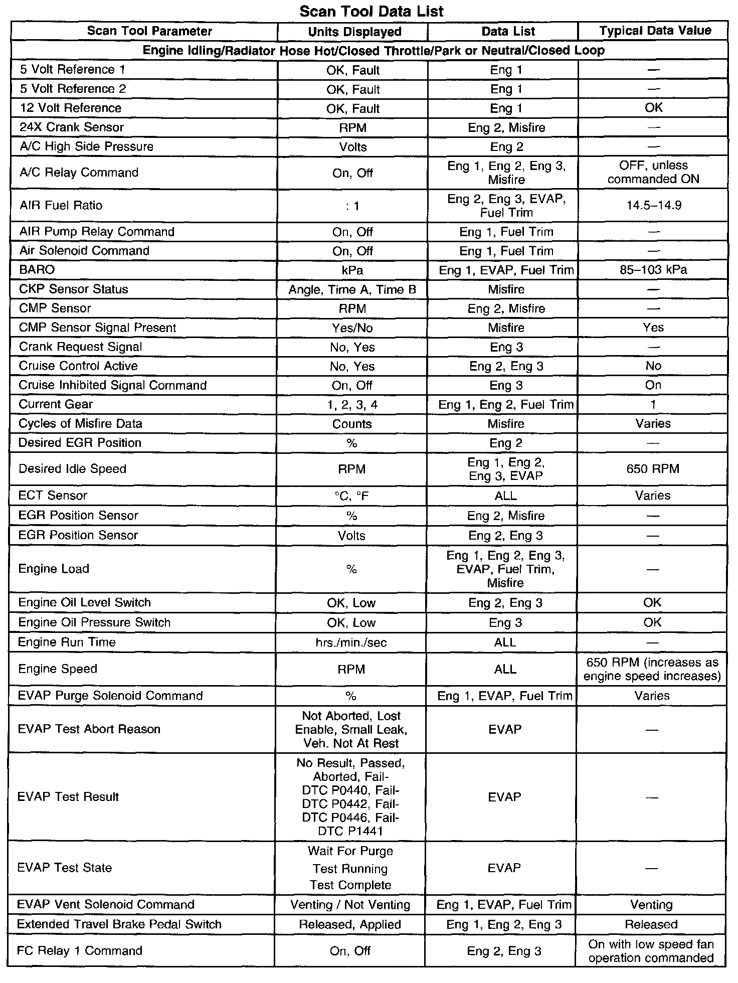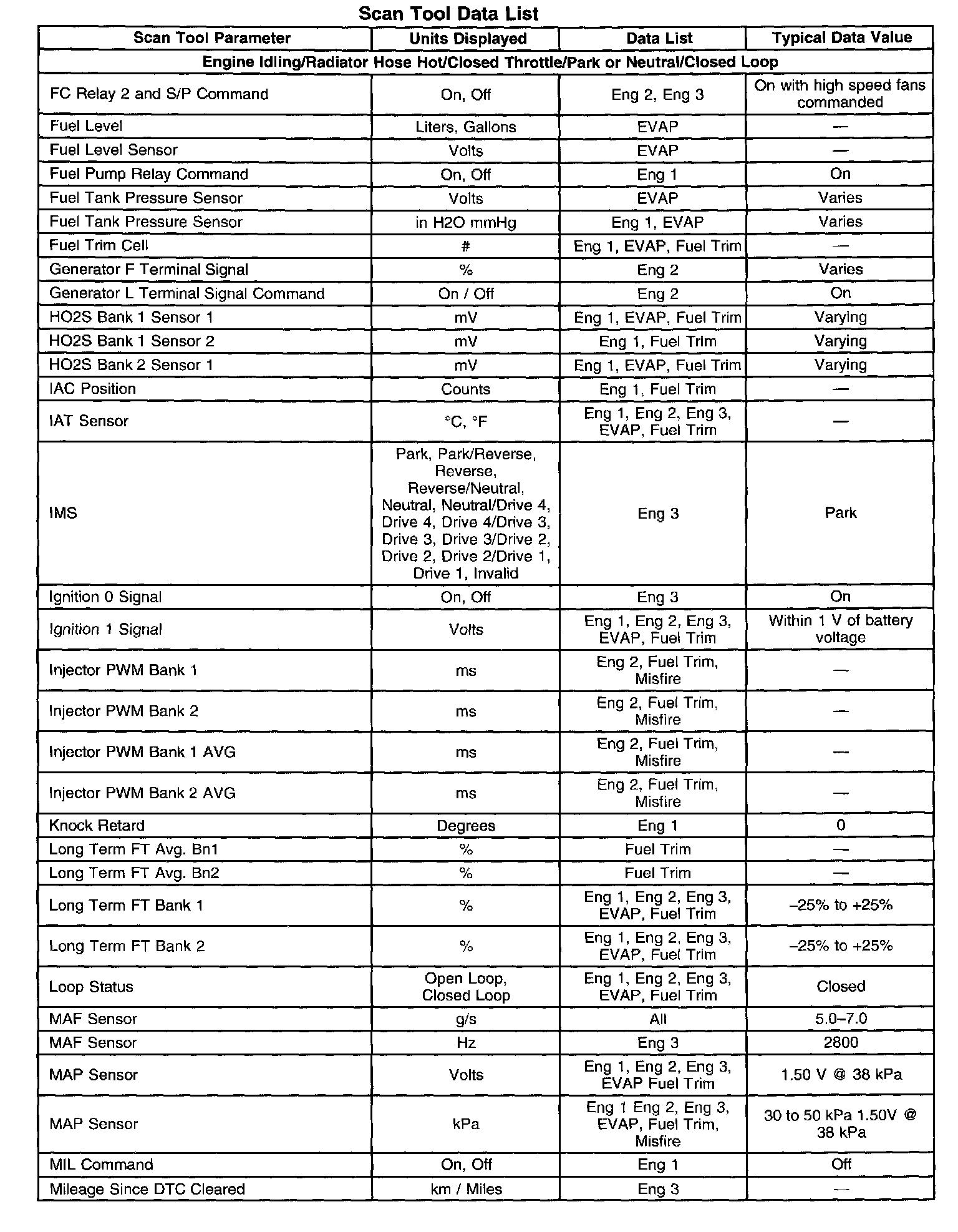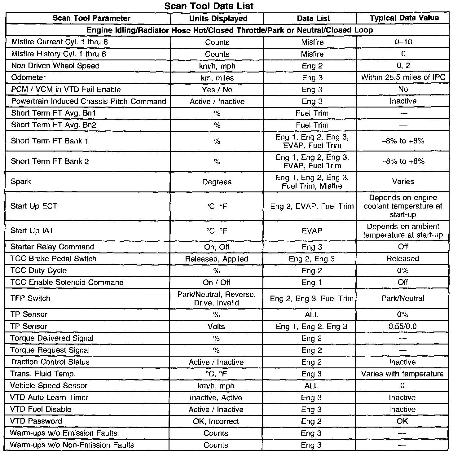 Scan Tool Data, Normal Values and Definitions
