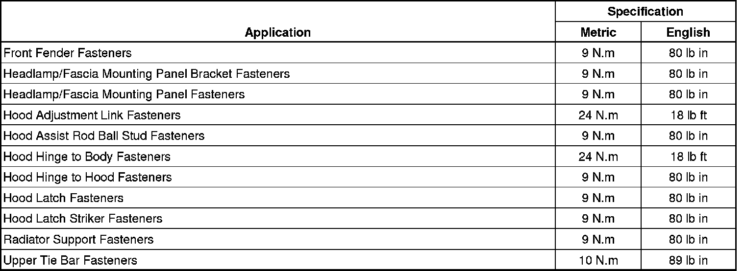 Fastener Tightening Specifications