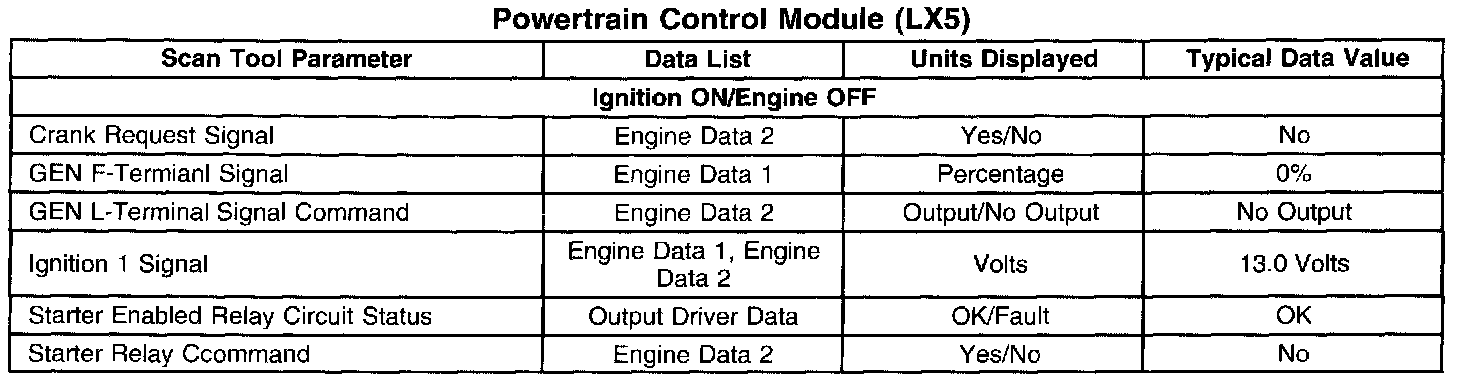 Scan Tool Data List - Powertrain Control Module (PCM)