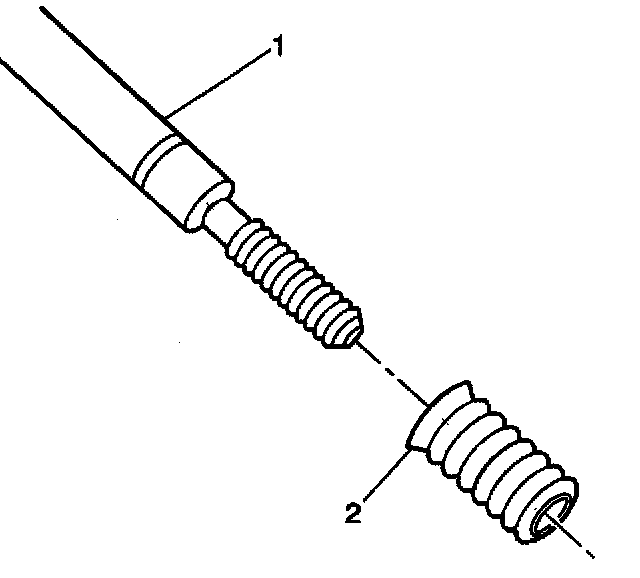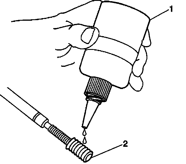 10. Apply threadlock sealant GM P/N United States 12345493, GM P/N Canada 10953488, J 42385-109, LOCTITE 277(R) or equivalent (1) to the insert OD threads (2).