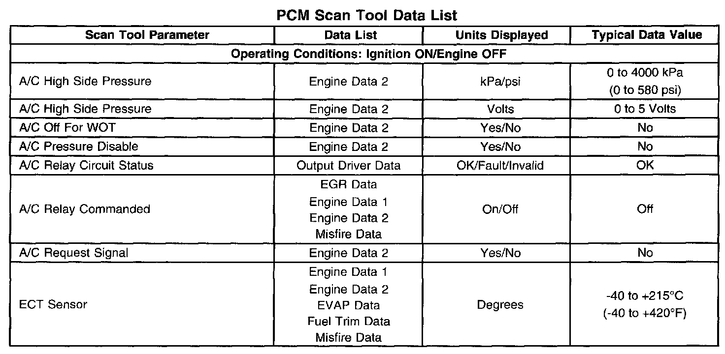 Heating And Air Conditioning Scan Tool Data List Part 1: