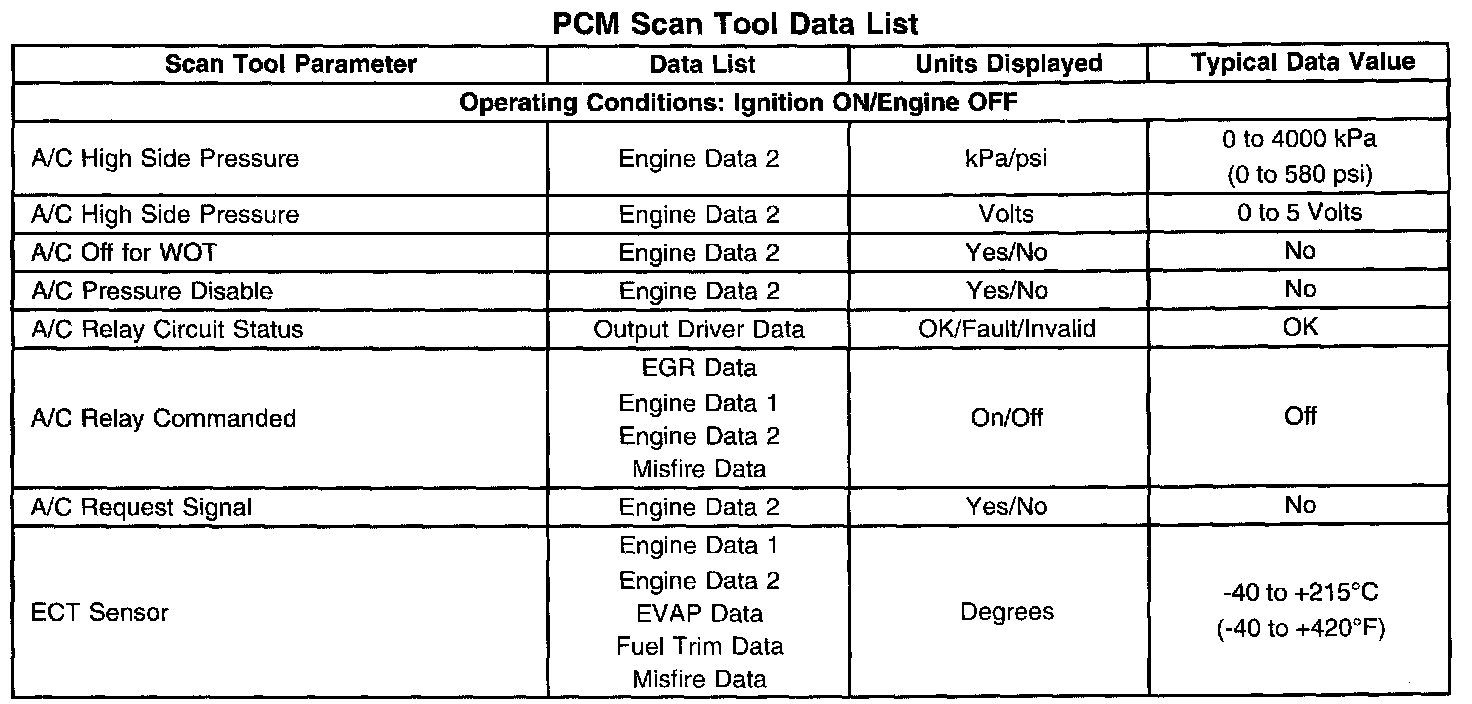 PCM Scan Tool Data List: