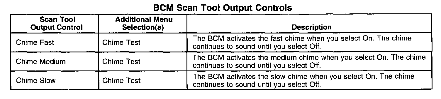BCM Scan Tool Output Controls:
