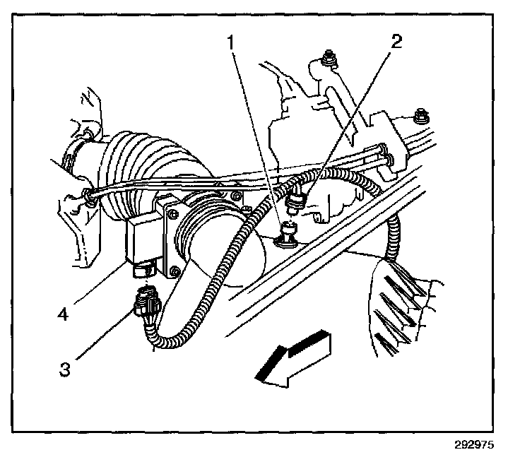 2. Loosen the 2 band clamps located on either side of the MAF sensor (4).
