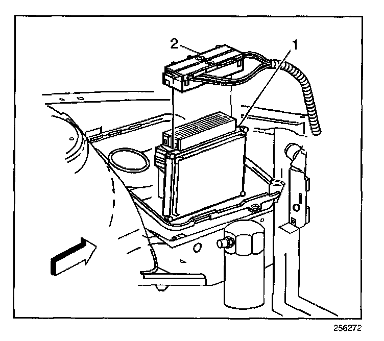 1. Install the PCM harness connectors (2) to the PCM (1).