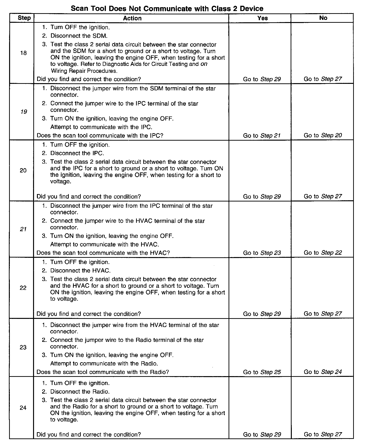 2. A partial malfunction in the class 2 serial data circuit uses a different procedure from a total malfunction of the class 2 serial data circuit. The following modules communicate on the class 2 serial data circuit: