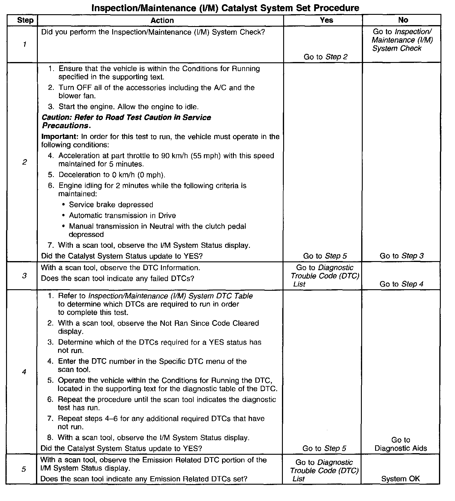 1. Perform the I/M System Check before performing this test Failure to do so may result in difficulty updating the status to YES. Inspection/Maintenance (I/M) System Check