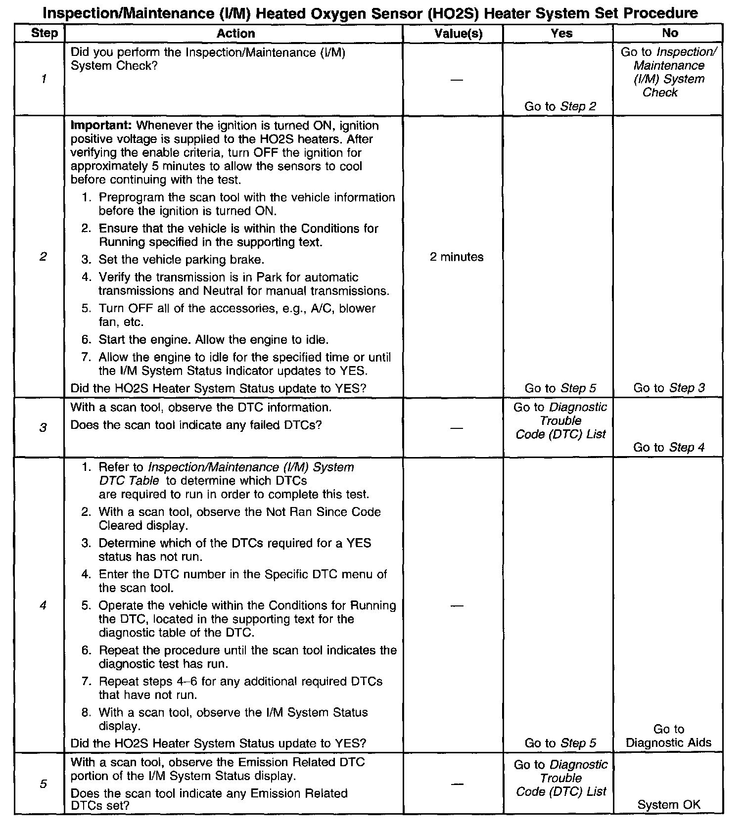 1. Perform the I/M System Check before performing this test. Failure to do so may result in difficulty updating the status to YES. Inspection/Maintenance (I/M) System Check