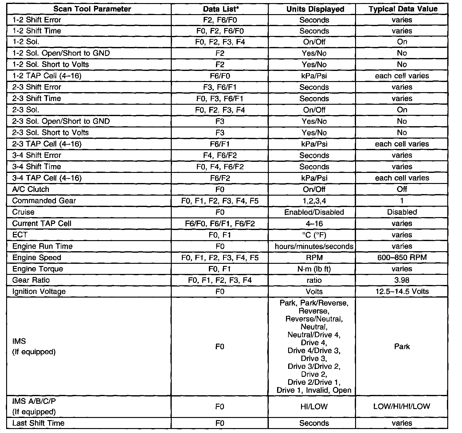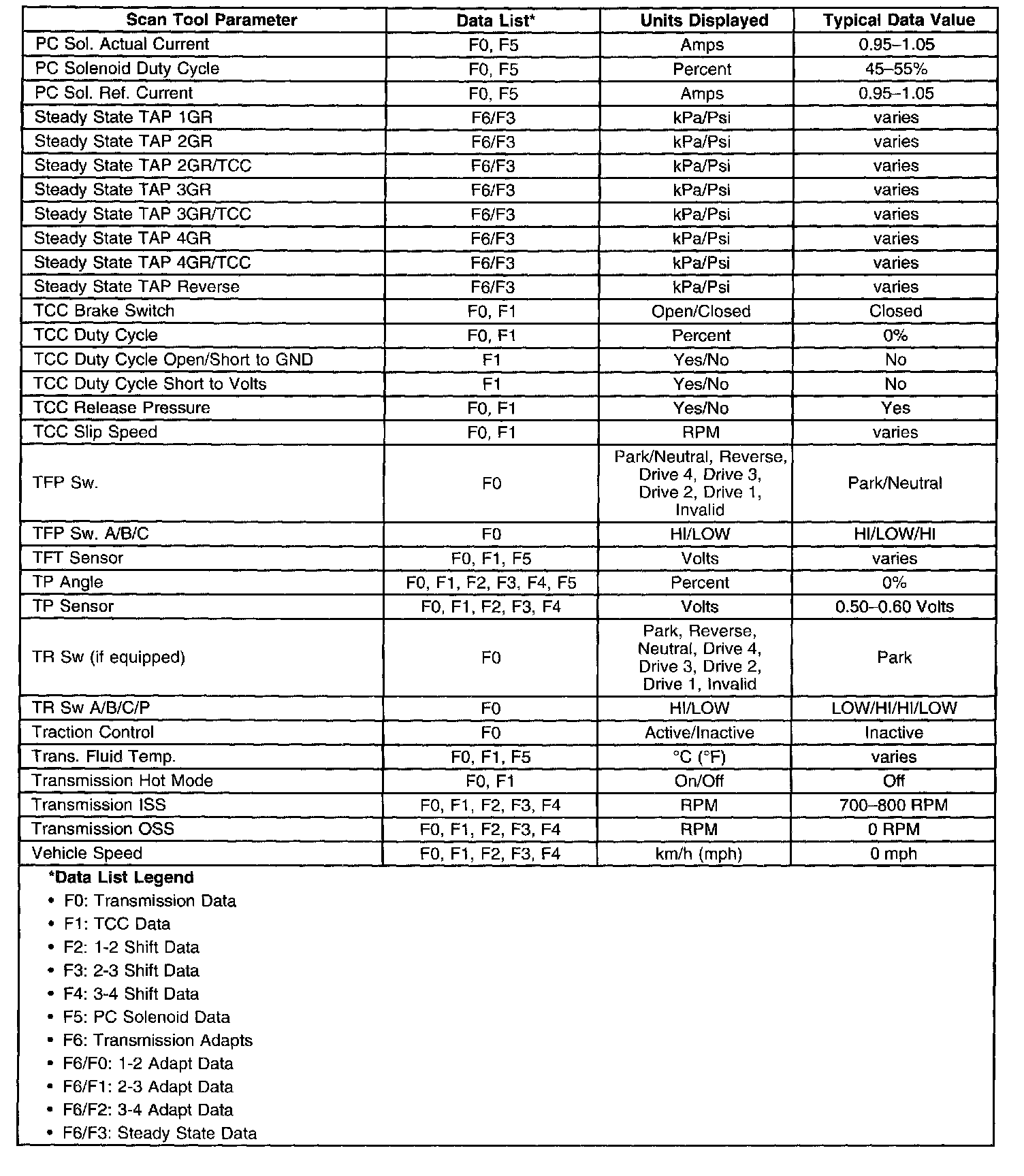 Transmission Scan Tool Data ListUse the scan tool data list under the following conditions: