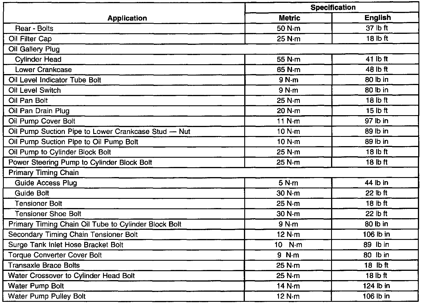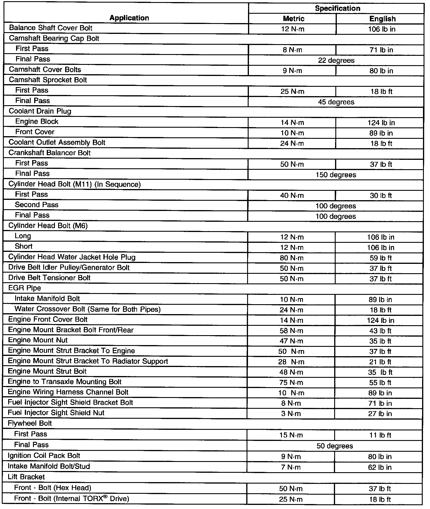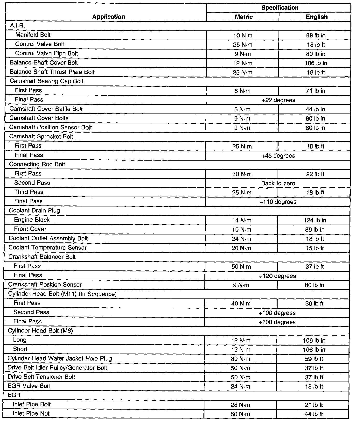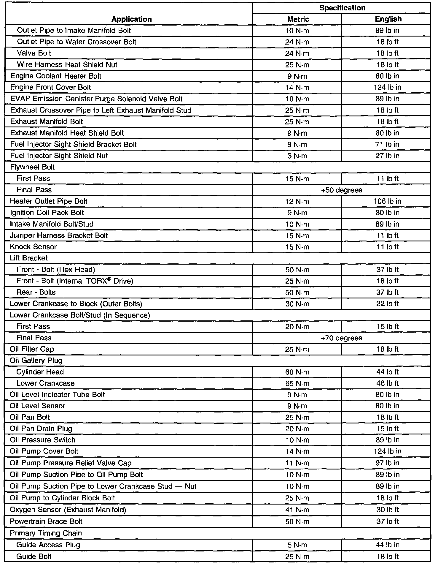 General Tightening SpecificationsPart 1 of 2