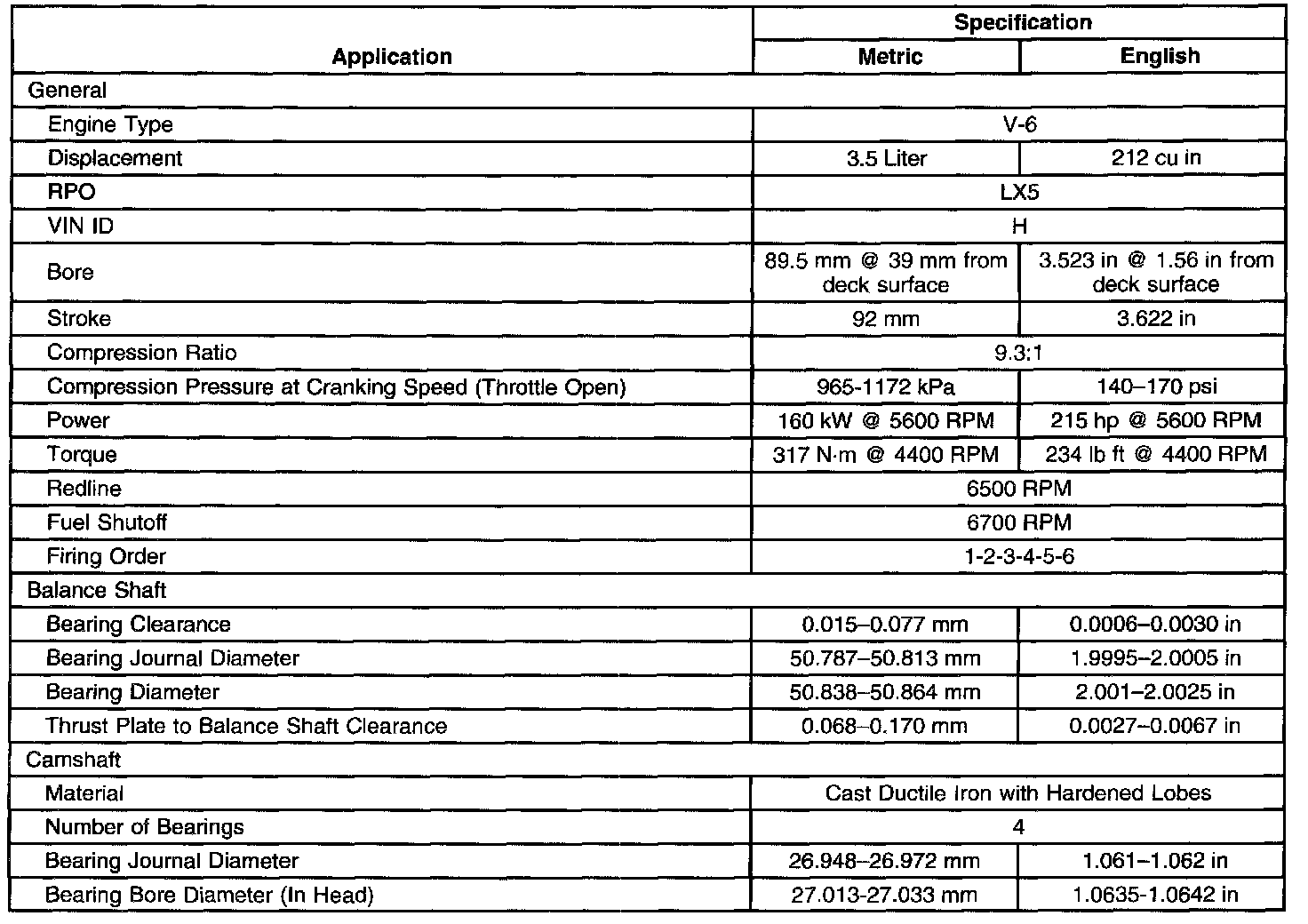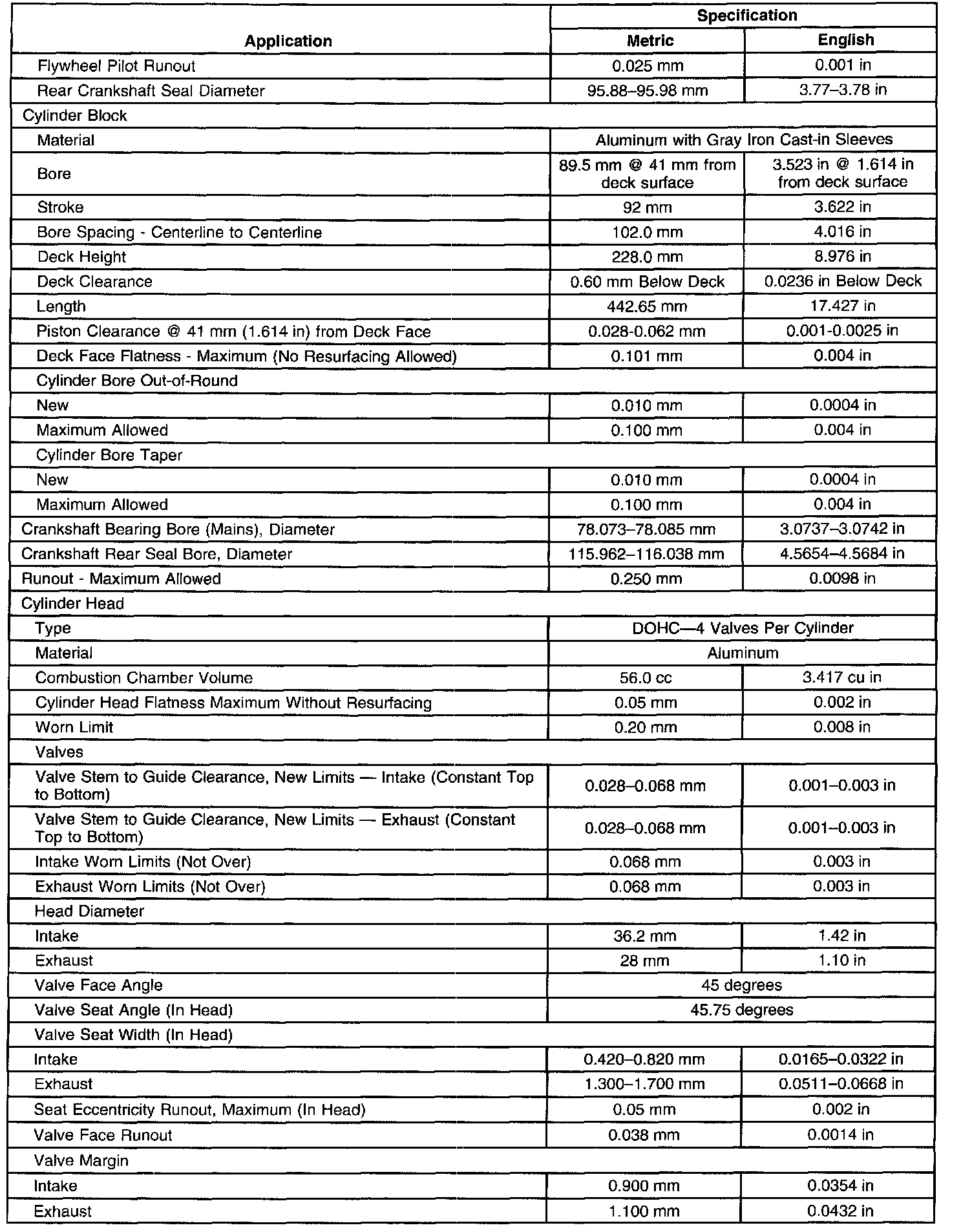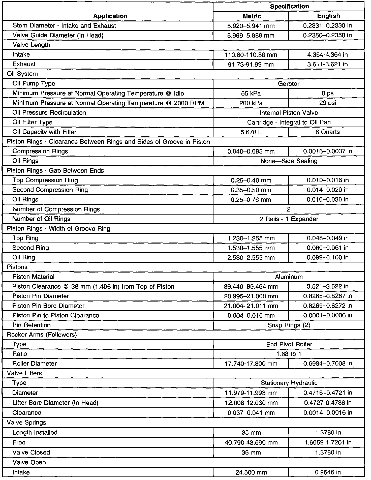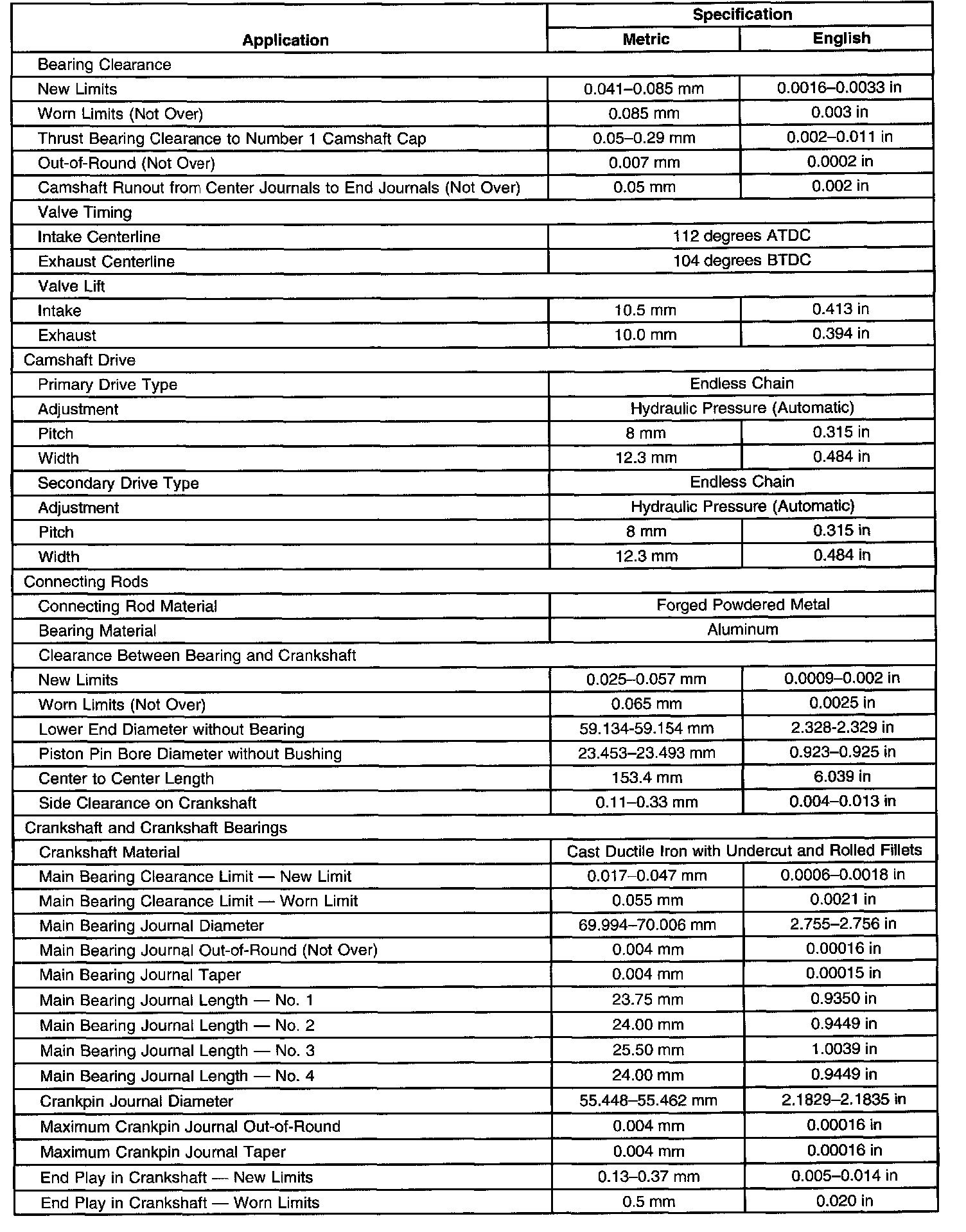 Engine Mechanical Specifications