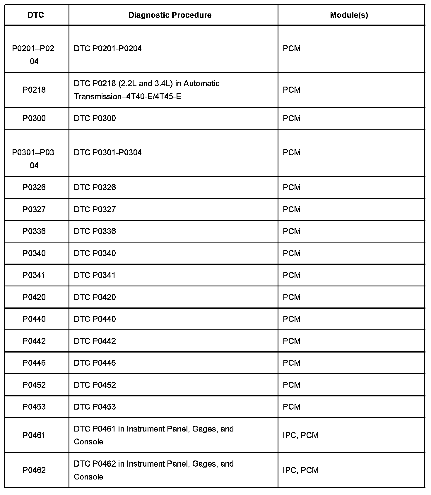 P0201-P0462: