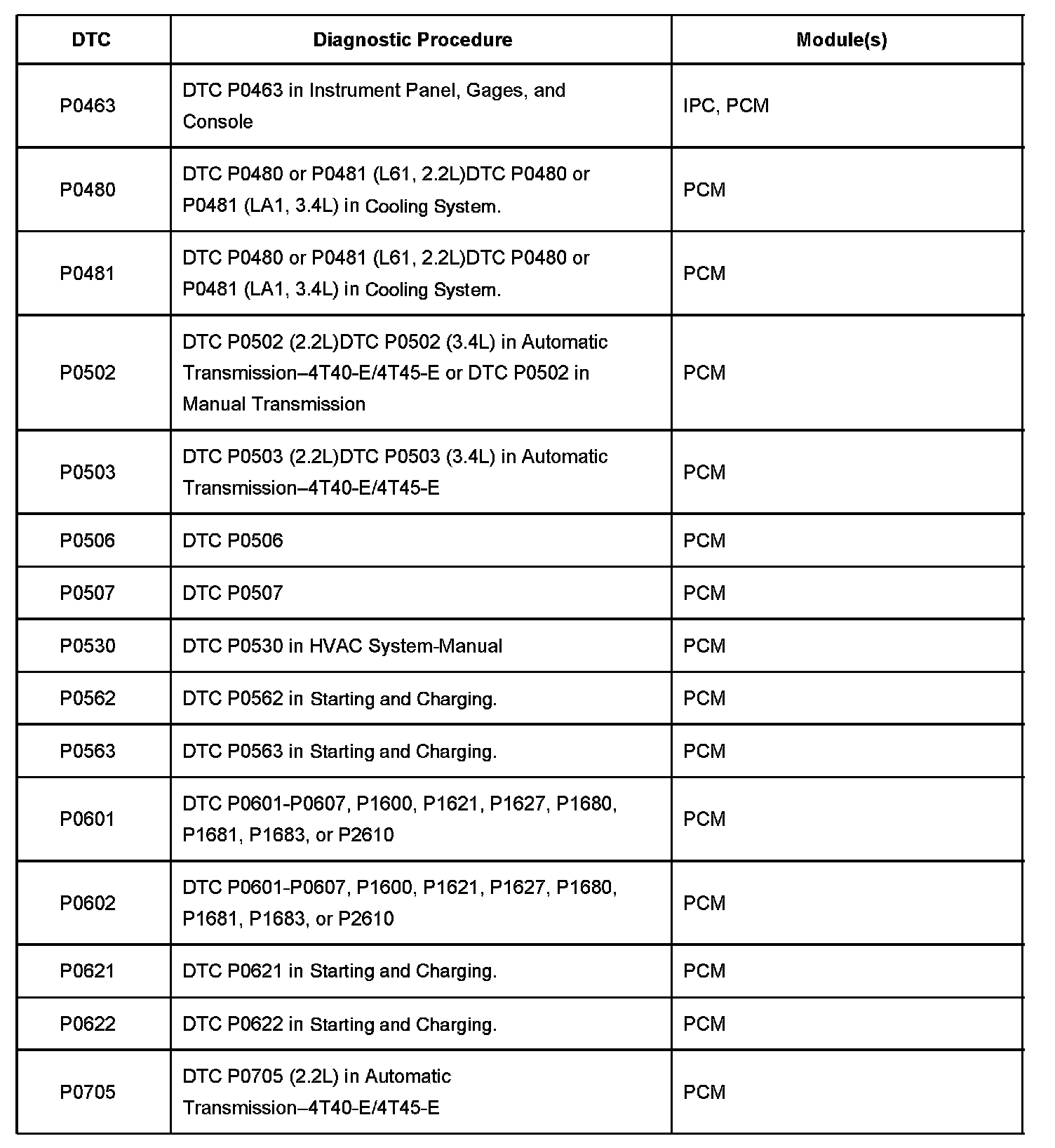 P0463-P0705: