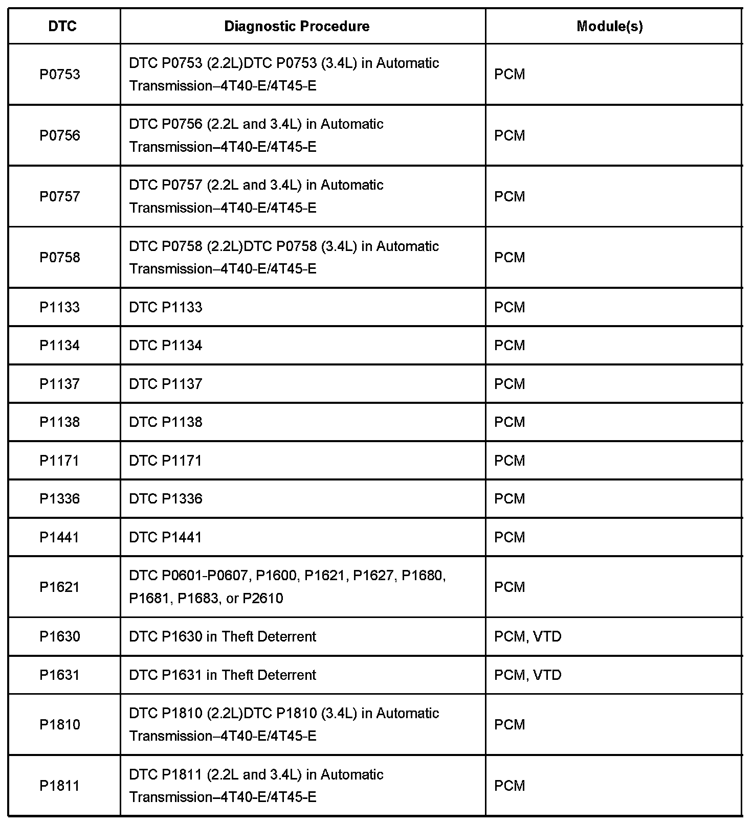 A L L Diagnostic Trouble Codes ( DTC )