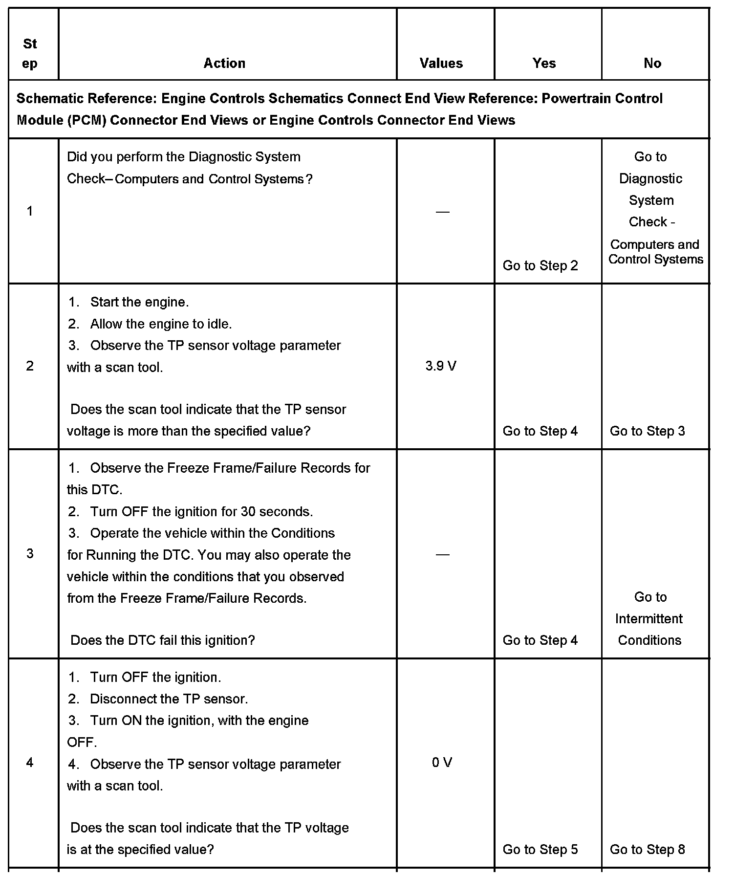- The TP sensor signal voltage is more than 3.9 volts when the engine speed is less than 1,500 RPM and the MAP is less than 60 kPa.