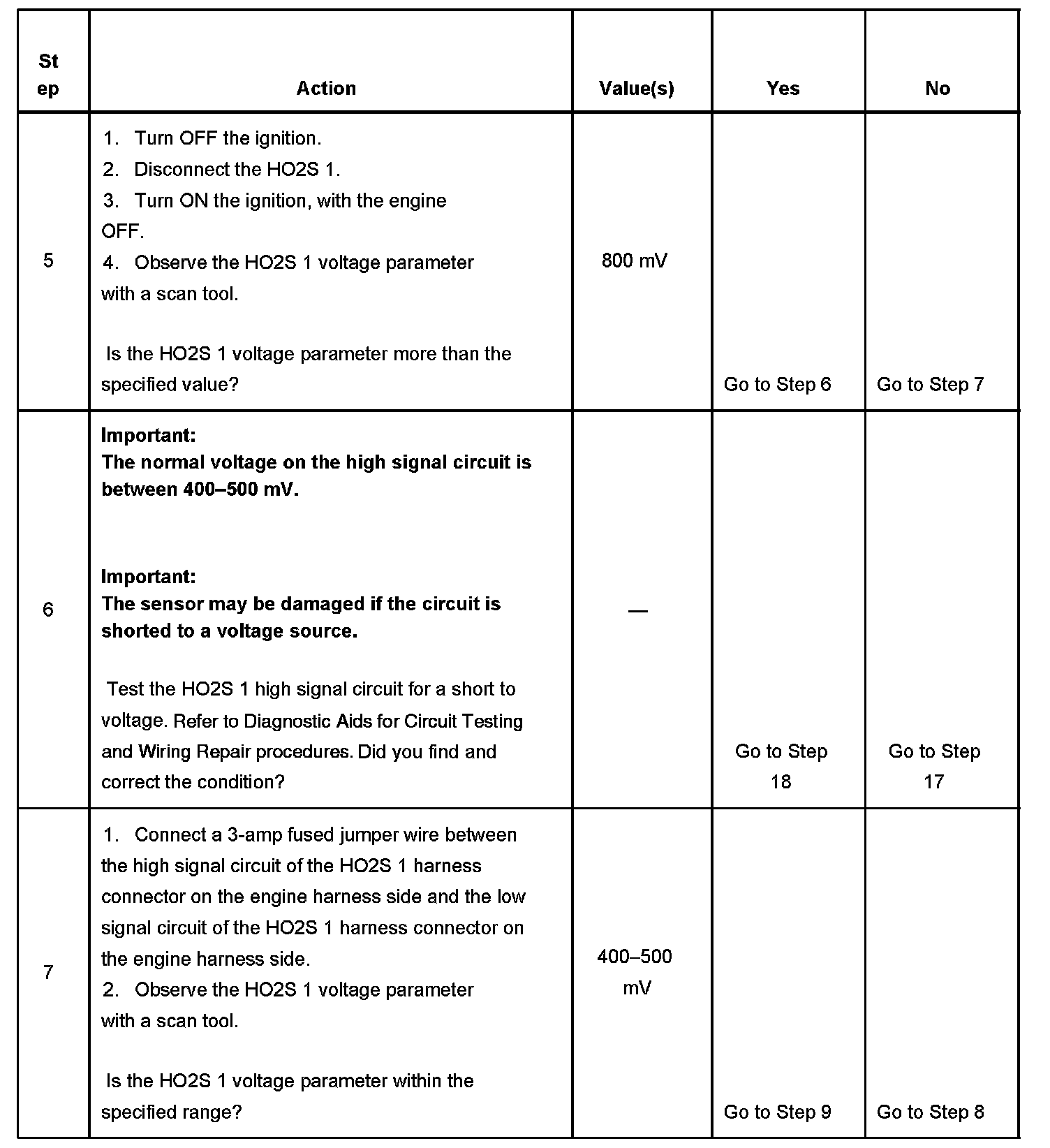 CIRCUIT DESCRIPTIONHeated oxygen sensors (HO2S) are used for fuel control and post catalyst monitoring. Each HO2S compares the oxygen content of the surrounding air with the oxygen content in the exhaust stream. The HO2S must reach operating temperature to provide an accurate voltage signal. Heating elements inside the HO2S minimize the time required for the sensors to reach operating temperature. The powertrain control module (PCM) supplies the HO2S with a reference, or bias, voltage of about 450 mV. When the engine is first started the PCM operates in open loop, ignoring the HO2S voltage signal. Once the HO2S reaches operating temperatures and Closed Loop is achieved, the HO2S generates a voltage within a range of 0-1,000 mV that fluctuates above and below bias voltage. High HO2S voltage indicates a rich exhaust stream. Low HO2S voltage indicates a lean exhaust stream.