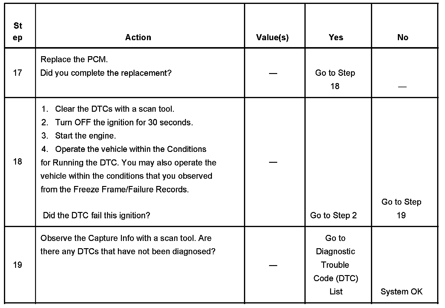 - A current DTC, Last Test Failed, clears when the diagnostic runs and passes.