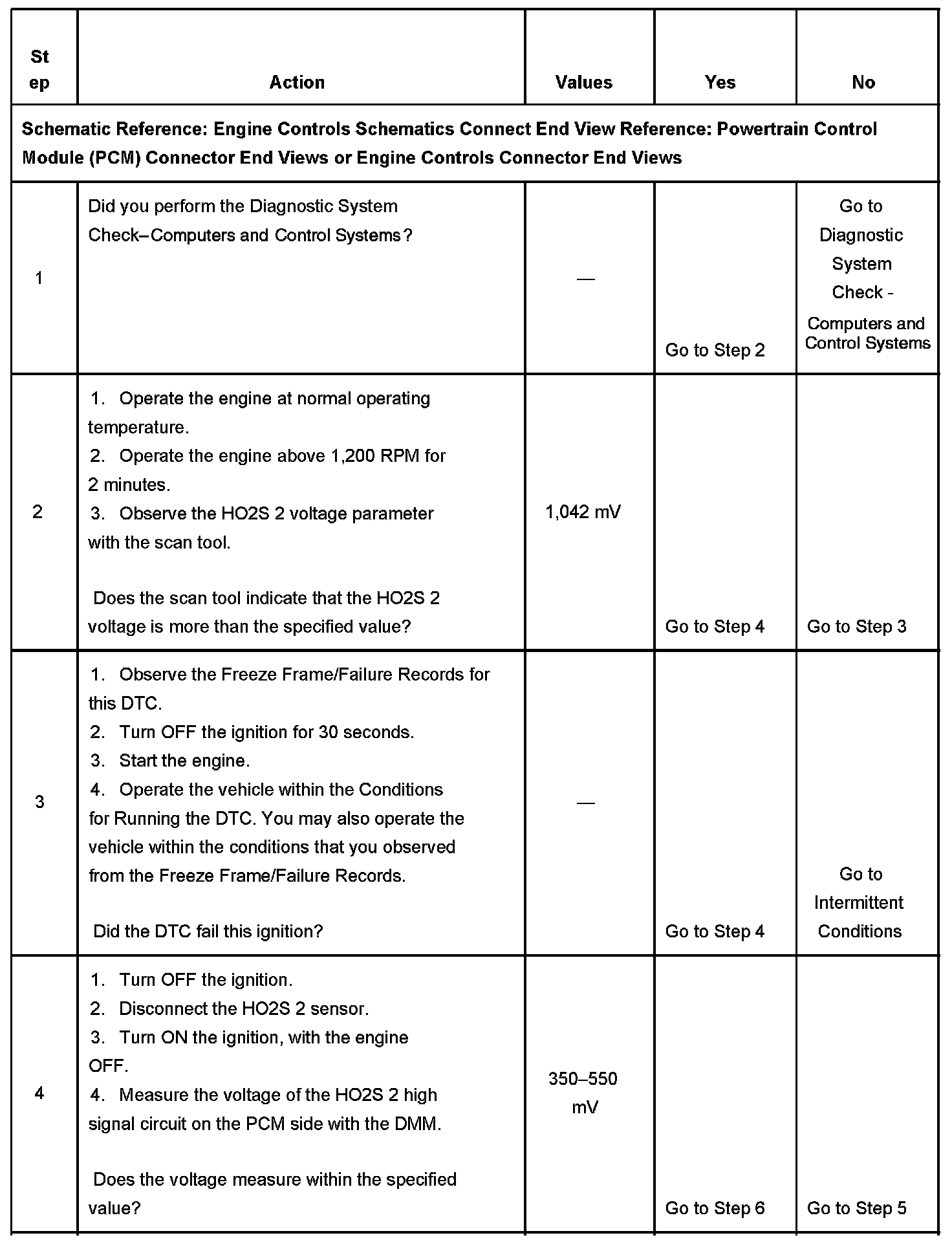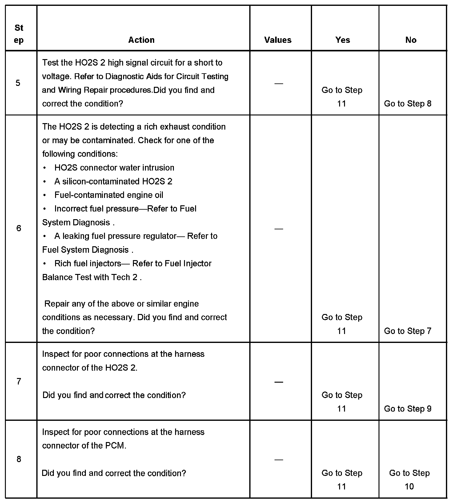 5. This step checks the HO2S 2 high signal circuit for a short to voltage.