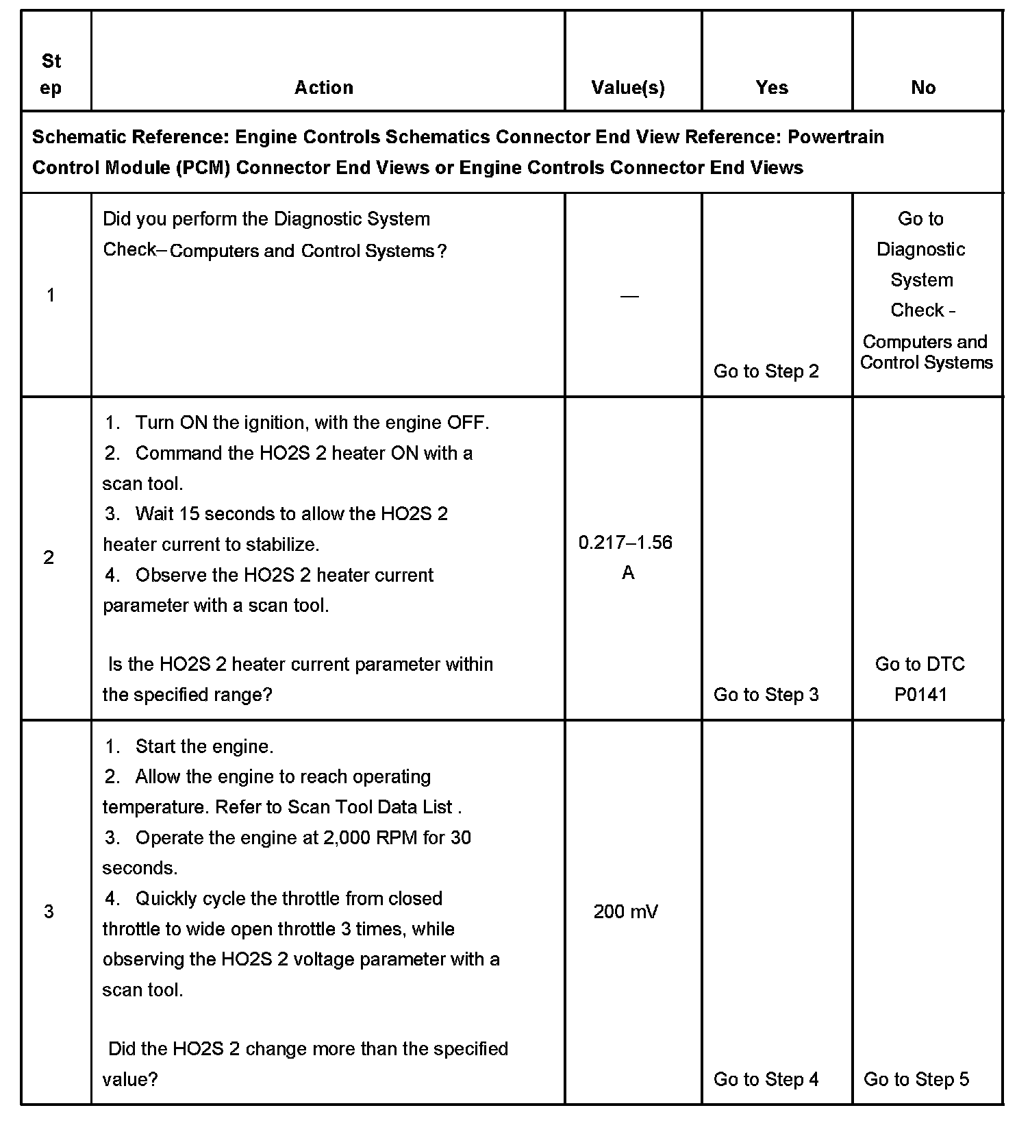 If the PCM detects that the HO2S voltage remains within the bias voltage range, DTC P0140 will set.