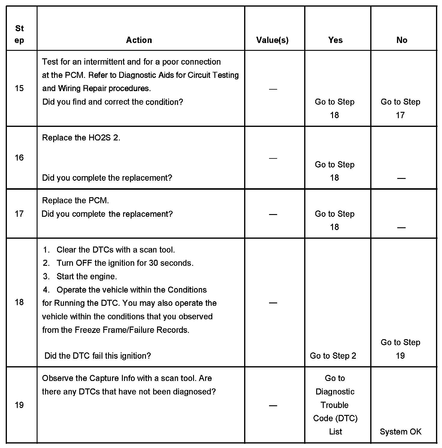- A current DTC, Last Test Failed, clears when the diagnostic runs and passes.