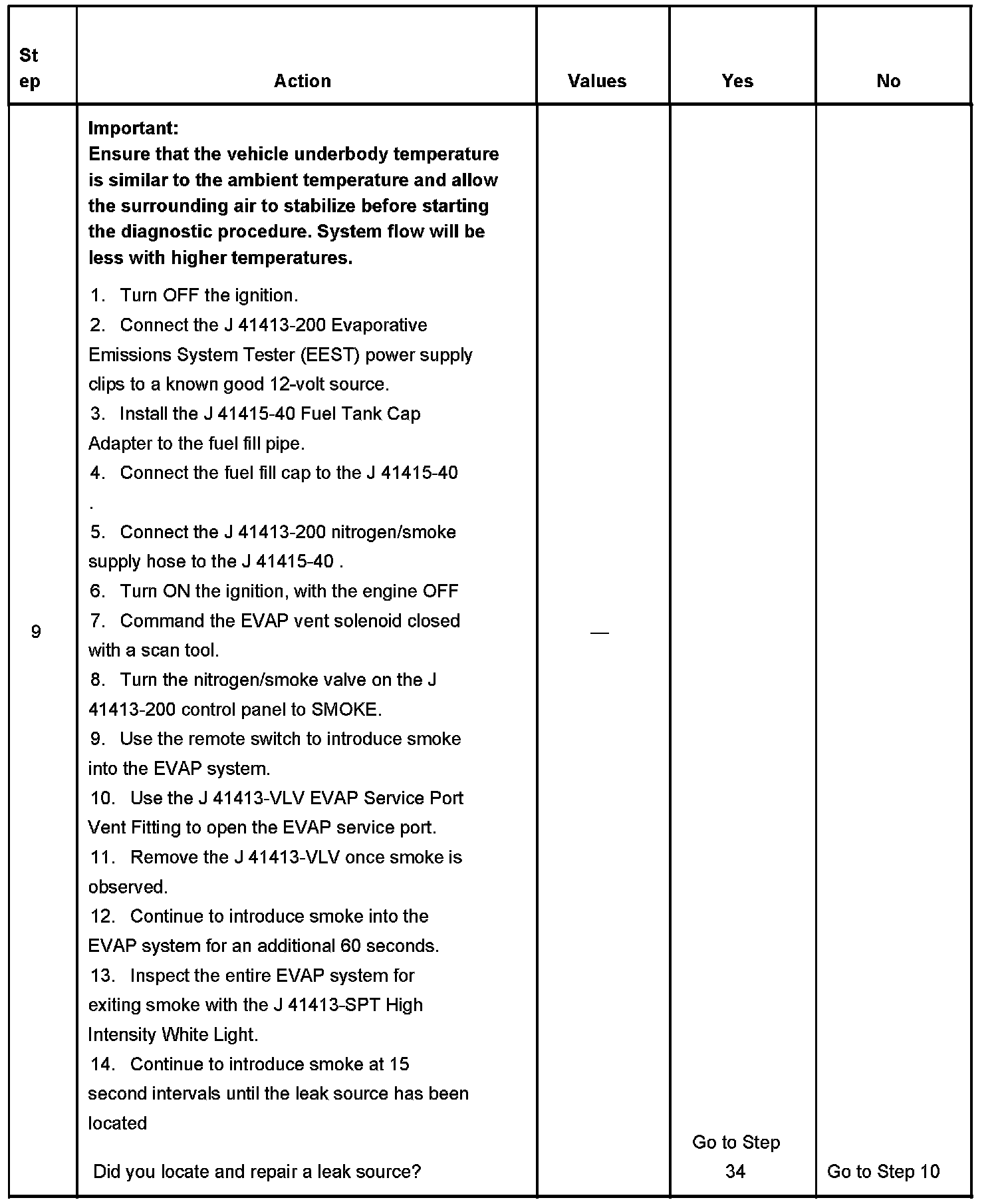 - To help locate intermittent leaks, use the J 41413-200 Evaporative Emissions System Tester (EEST) to introduce smoke into the EVAP system. Move all EVAP components while observing smoke with the J 41413-SPT High Intensity White Light.