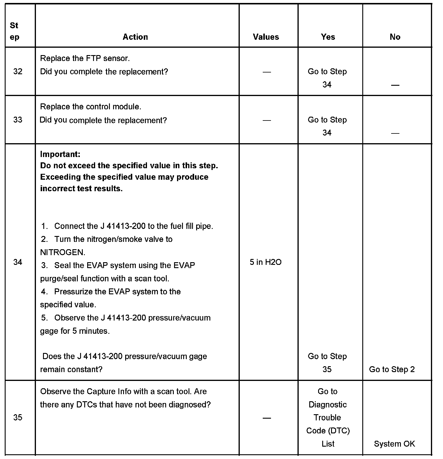 11. This test verifies that the fuel tank pressure (FTP) sensor is accurate. An FTP sensor that does not correctly respond to vacuum, or pressure may cause this DTC to set.