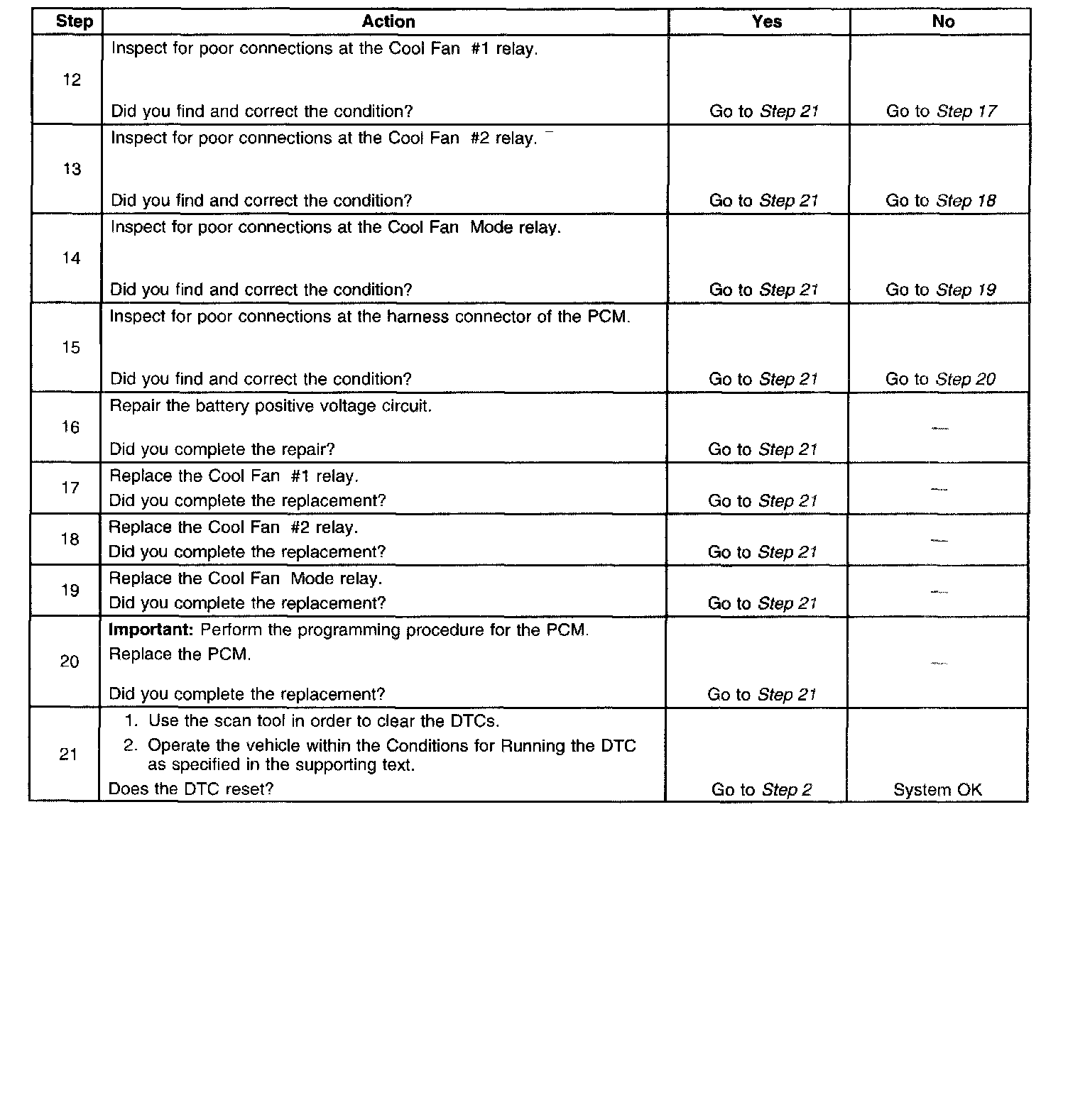 - The PCM detects an open, a short to ground or a short to voltage on the cooling fan relay control circuit.