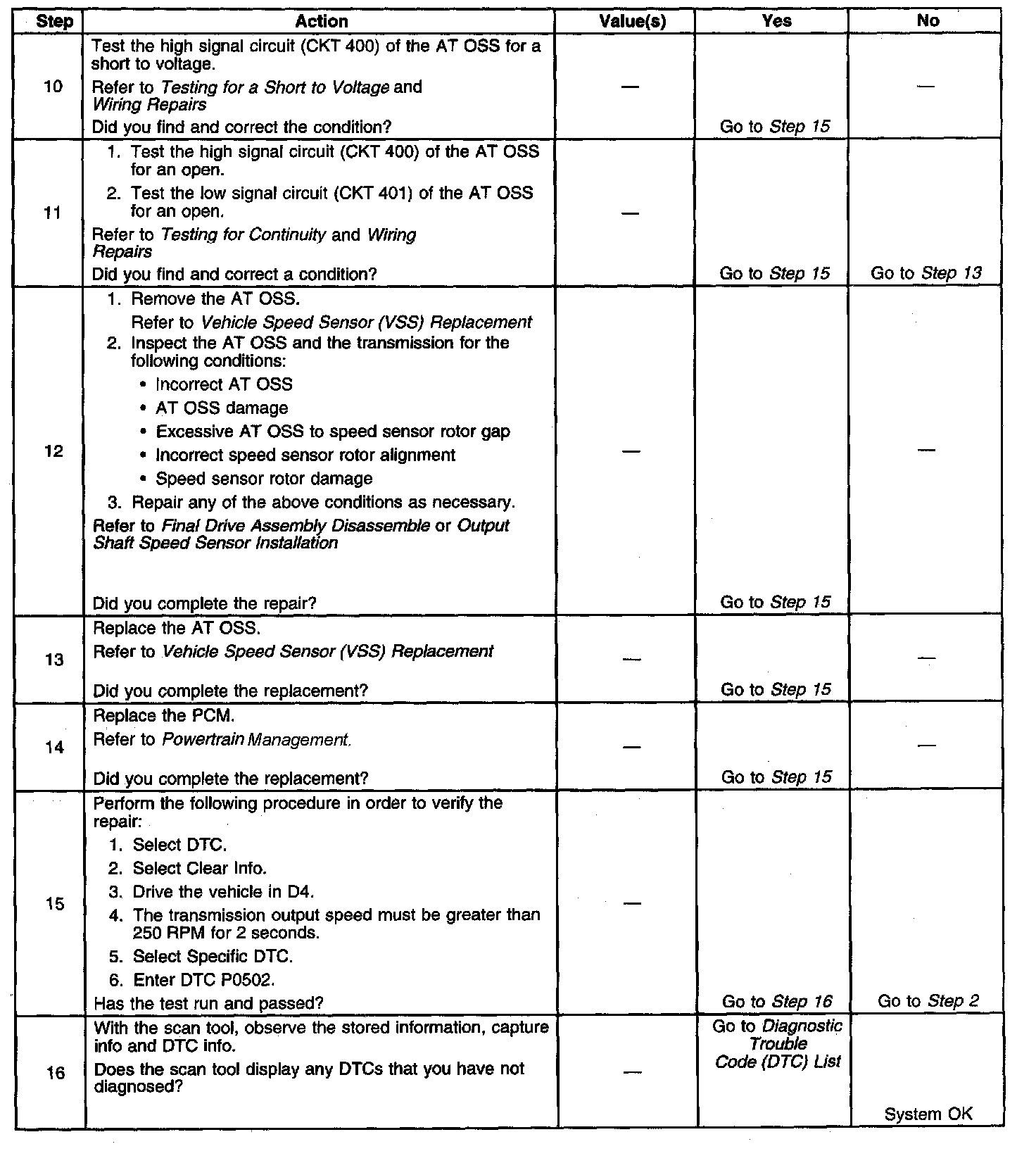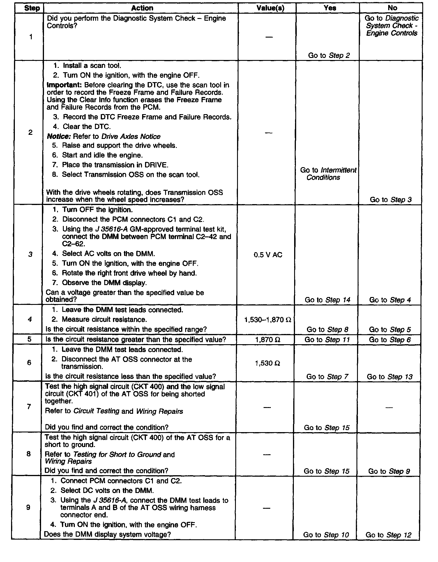 3. This step tests the ability of the AT OSS to produce an AC voltage. This step also verifies the integrity of the wiring to the PCM.