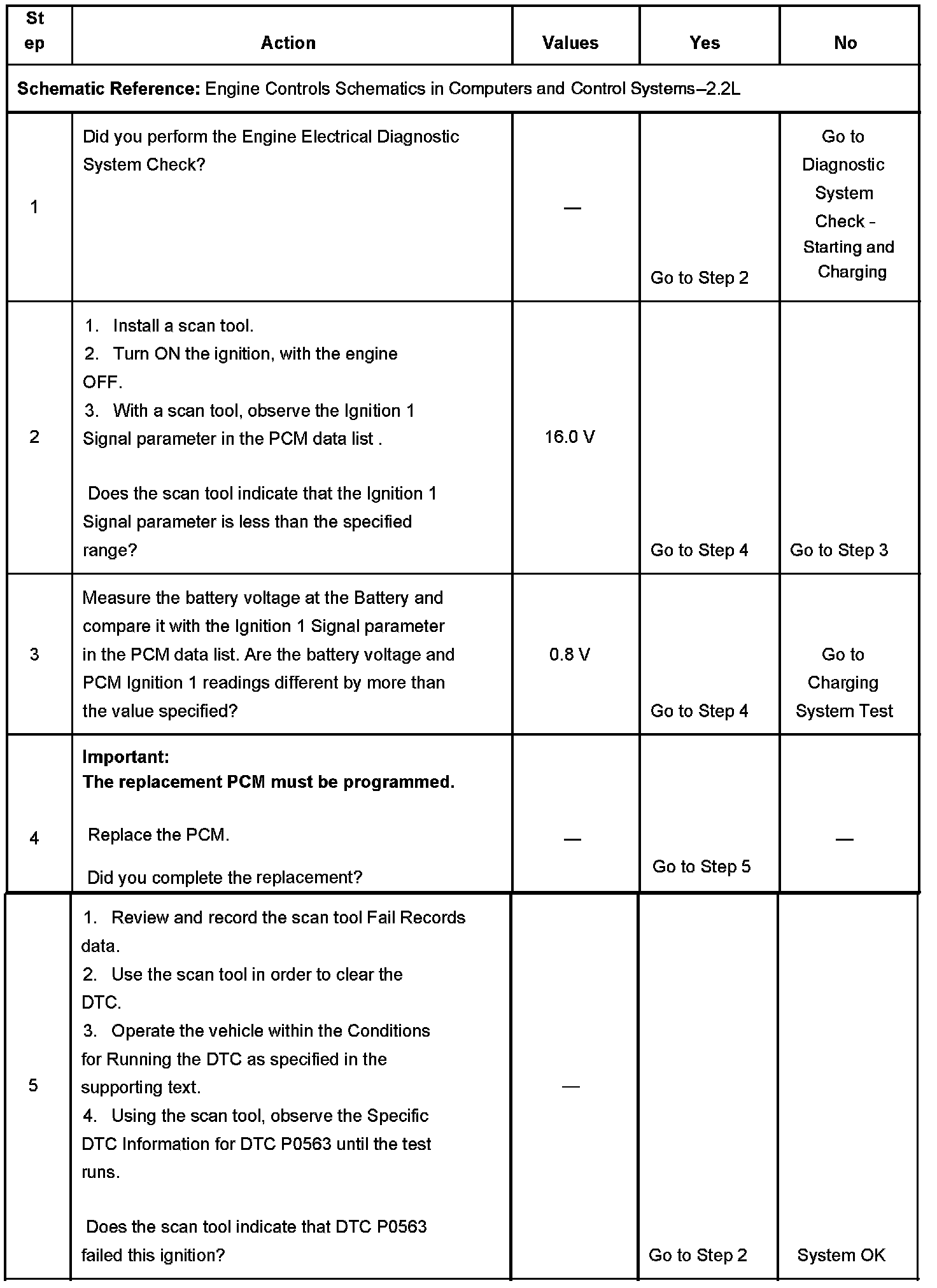 CIRCUIT DESCRIPTIONThe PCM checks the system voltage to make sure that the voltage stays within the proper range. Damage to components, and incorrect input can occur when the voltage is out of range. The PCM monitors the system voltage over an extended length of time. If the PCM detects an excessively high system voltage, DTC P0563 will set.