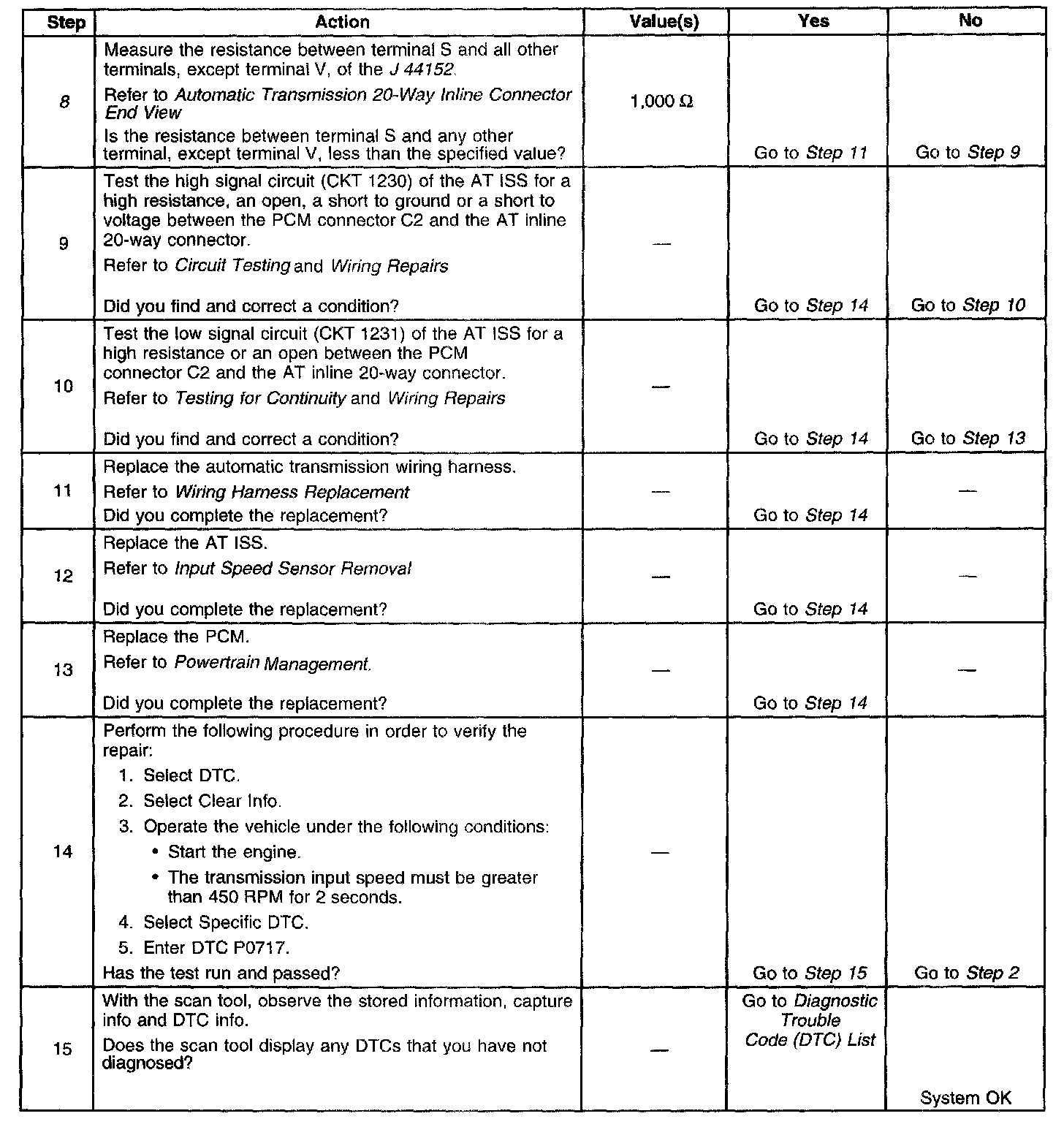 8. This step tests the AT ISS high signal circuit for being shorted to another circuit within the transmission.