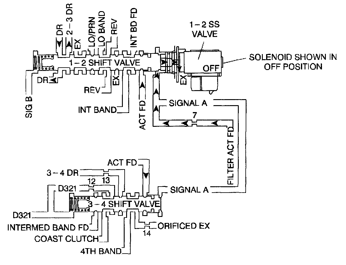 4. This step tests for a mechanical or hydraulic condition causing the 1-2 SS valve to be stuck OFF, or the circuit to be released.