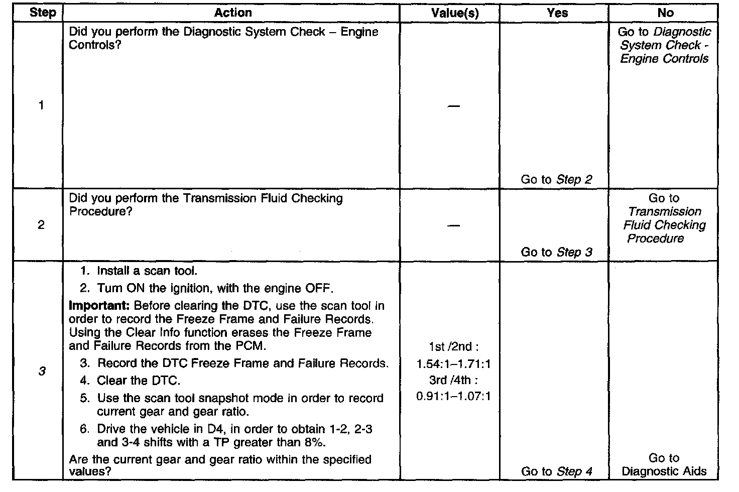 ^ The PCM commands 4th gear and the gear ratio is 0.91:1 - 1.07:1, 3rd gear, for 4 seconds.