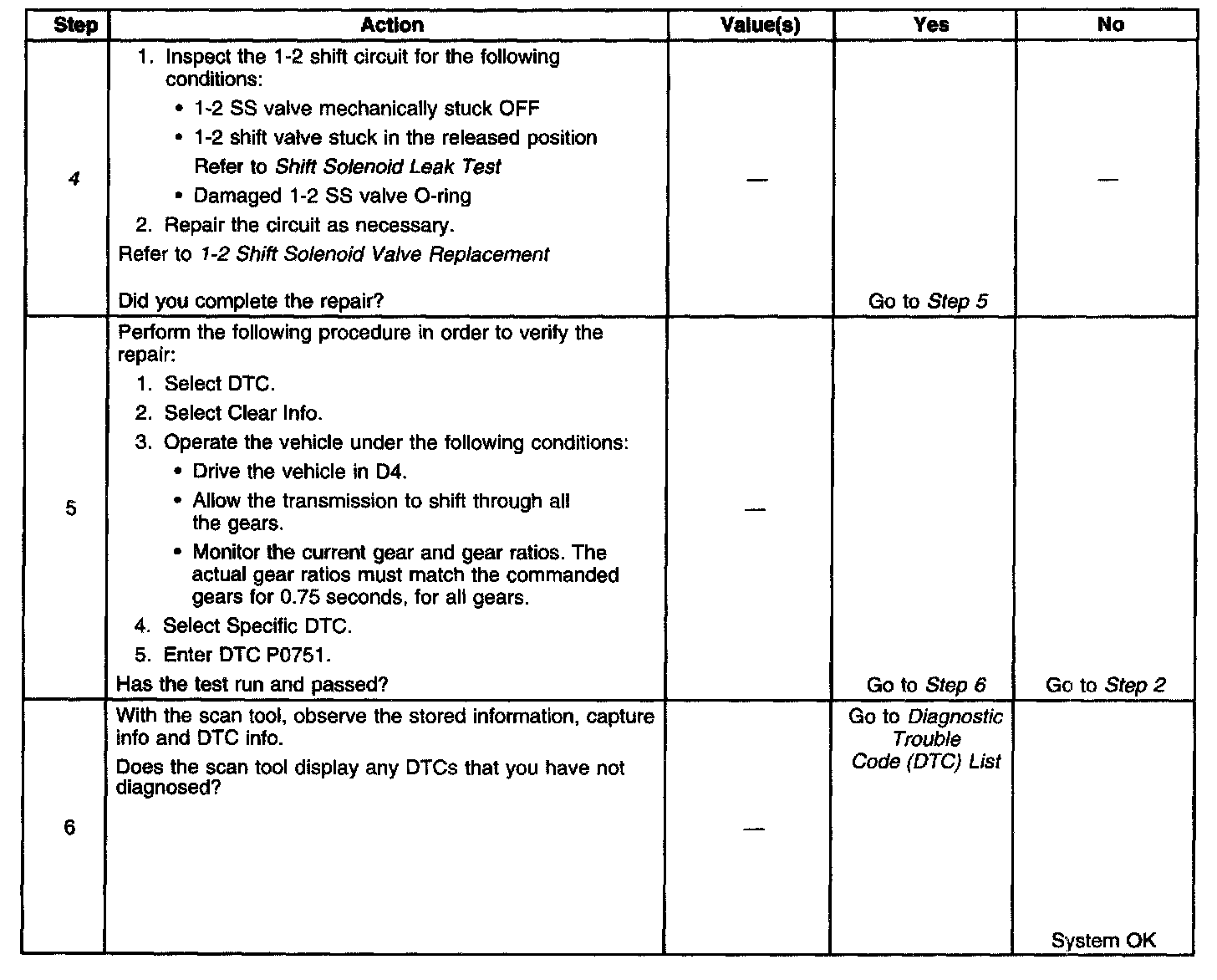 ^ No shift solenoid electrical DTCs P0753 or P0758.