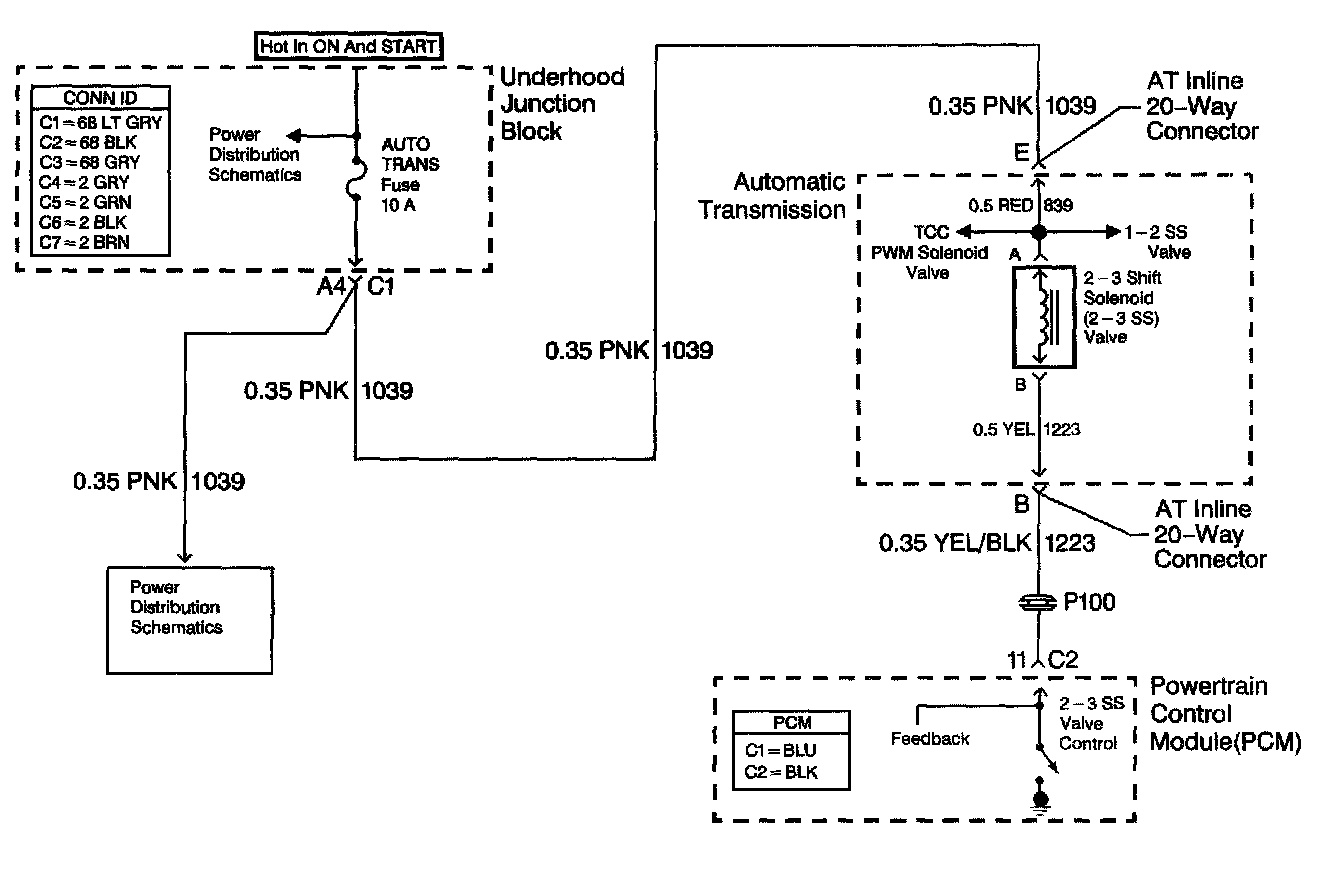 The 2-3 Shift Solenoid (SS) valve is a normally-open exhaust valve that, in conjunction with the 1-2 Shift Solenoid (SS) valve, allows four different shifting combinations. Refer to Shift Solenoid Valve State and Gear Ratio. The 2-3 SS valve is attached to the control valve body, within the transmission.