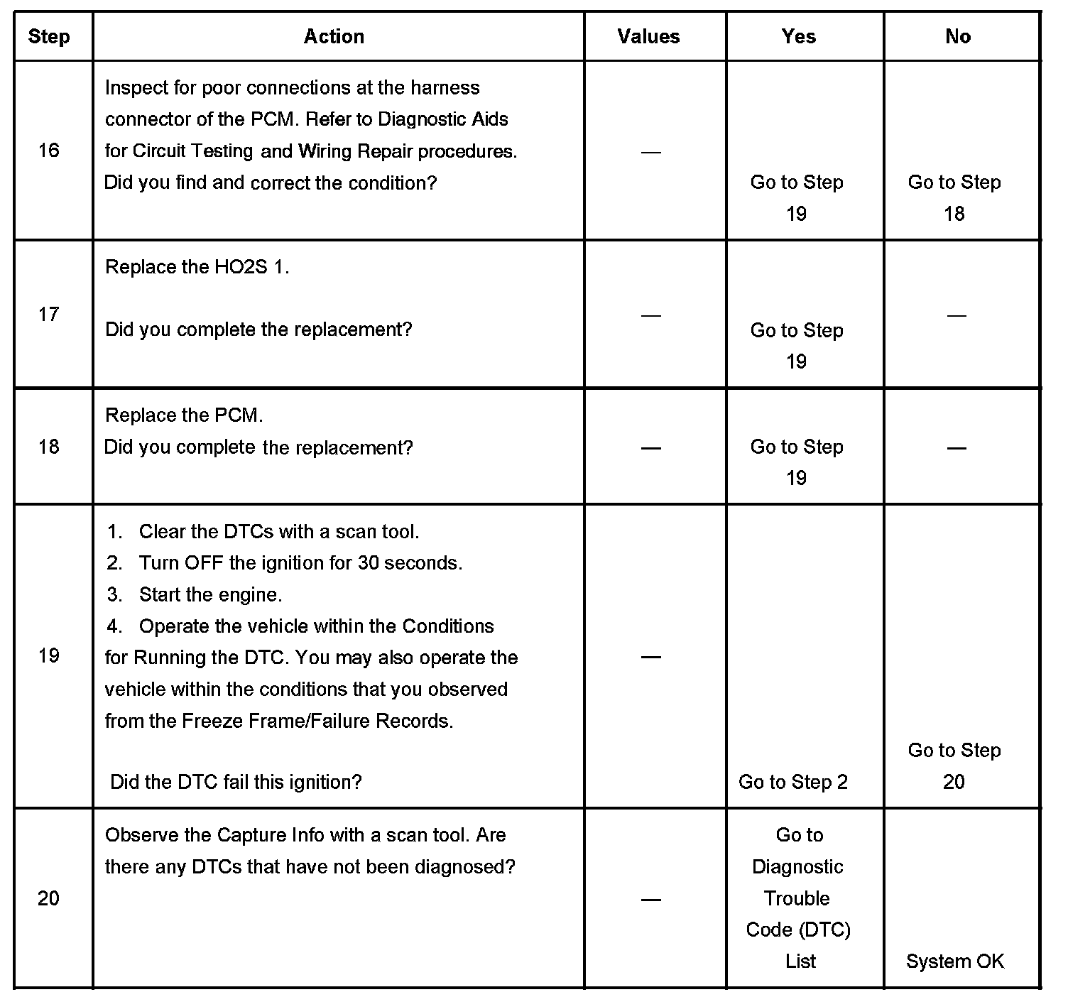 - A current DTC, Last Test Failed, clears when the diagnostic runs and passes.