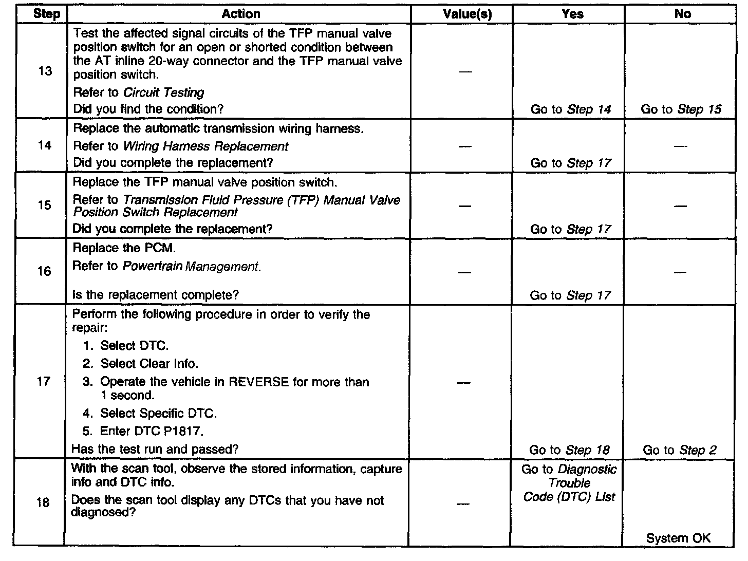 When the PCM detects REVERSE with a drive gear ratio, DTC P1817 sets. DTC P1817 is a type B DTC.