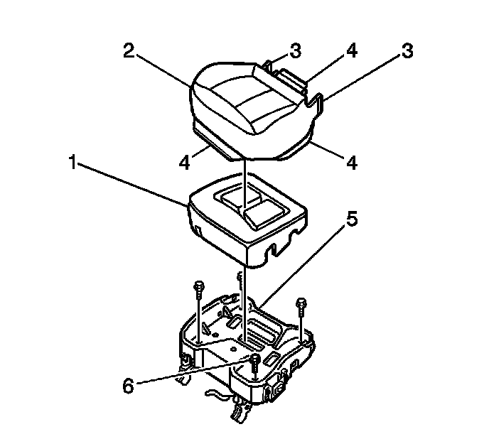 3. Remove the cushion pad (1) from the seat frame (2).