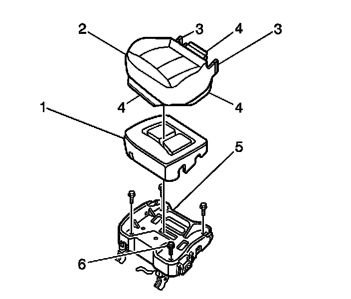 1. Install the cushion pad (1) to the seat frame (2).