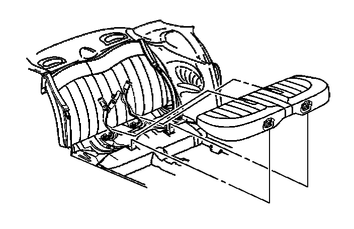 1. With a flat-bladed tool press rearward on the retainer for the rear seat cushion.