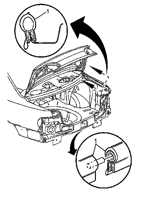 1. Install the rear compartment lid weatherstrip (1) to the pinchweld flange.
